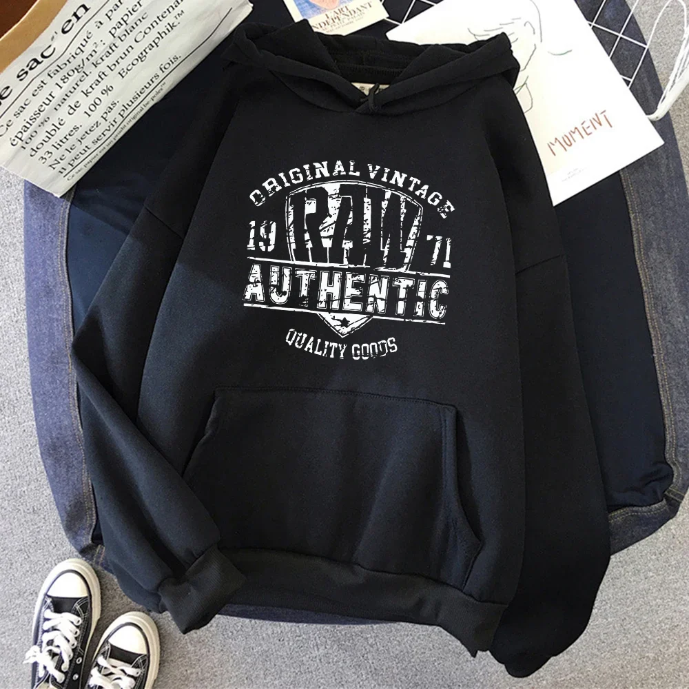 Sweatshirt Vintage 1971 Raw Ahthentic Hoody Women Crewneck Hip Hop Autumn Casual Clothing Female Loose Hoodie