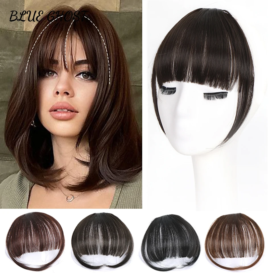 Synthetic False Bangs Clip In Hair Hairpiece Accessories Invisible Fringe Fake Bangs Clip In Hair Extensions Heat Resistant Wigs