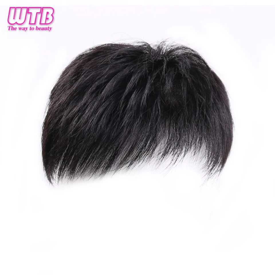Synthetic Natural Male Toupee Short Wig Hair Style Topper for Young Men Balding Hair-loss High Hair line Clip-On Hair Extensions