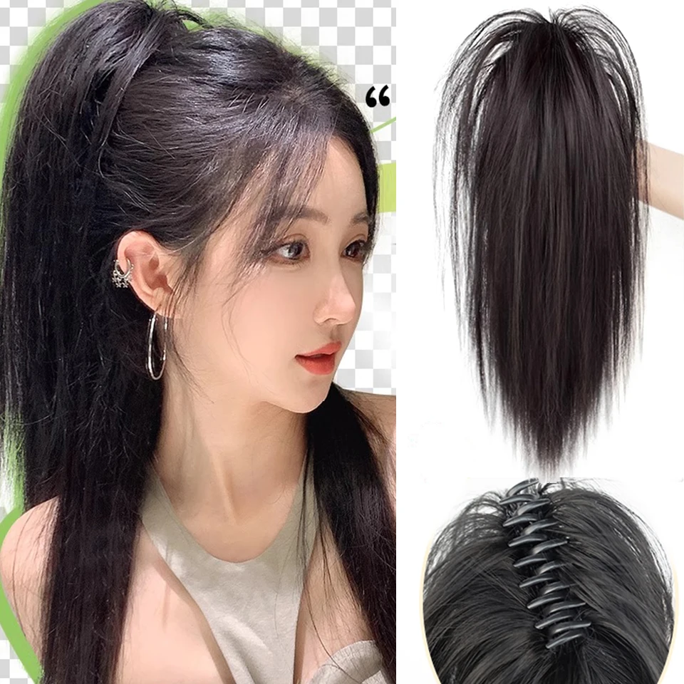 Synthetic Short Straight Claw Clip Ponytail Hair Extensions 16Inch Tail False Hair For Women Horse Tail Black Brown Hairpiece