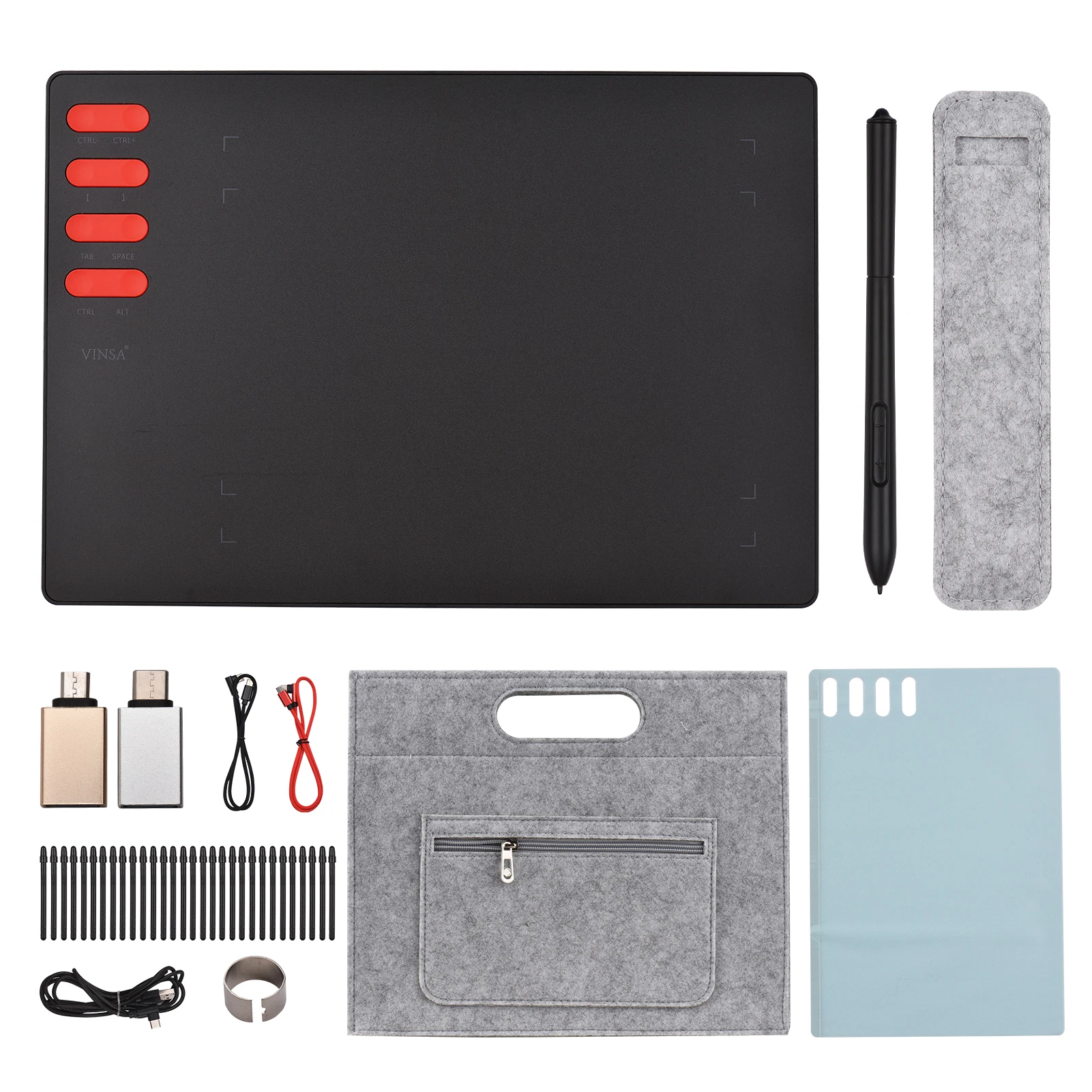 T505 Graphics Drawing Tablet Ultralight Art Creation Sketch Battery-free Stylus 30 Pen Nibs 8192 Levels Pressure 8 Shortcut Keys