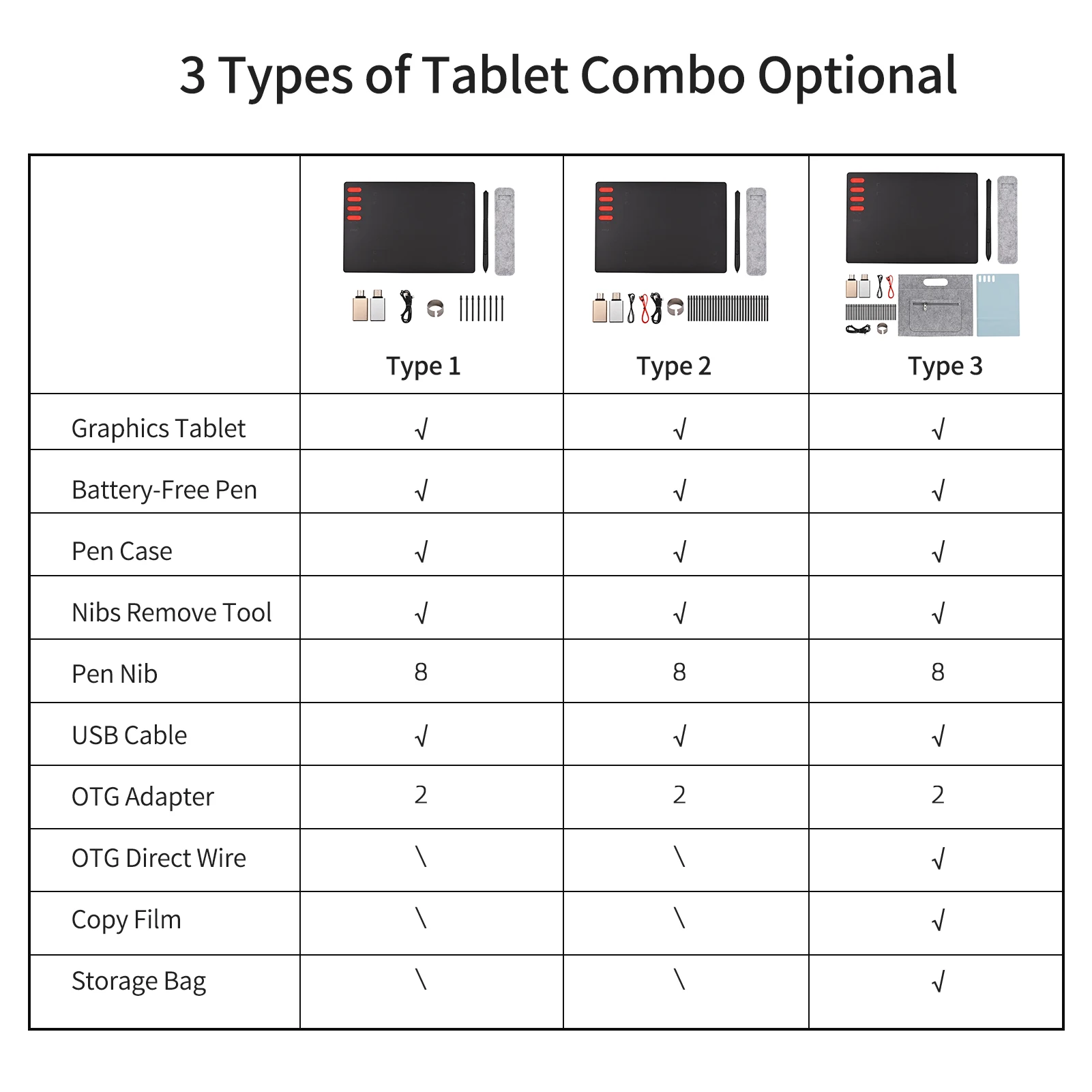 T505 Graphics Drawing Tablet Ultralight Art Creation Sketch with Battery-free Stylus 8 Pen Nibs 8192 Levels Pressure for Drawing