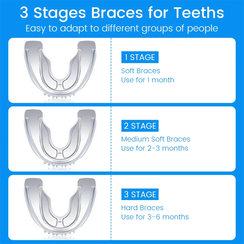 2. Divided into three stages to wear, can make the teeth slowly adapt to the process of correction. (It is recommended to buy three-stage braces)