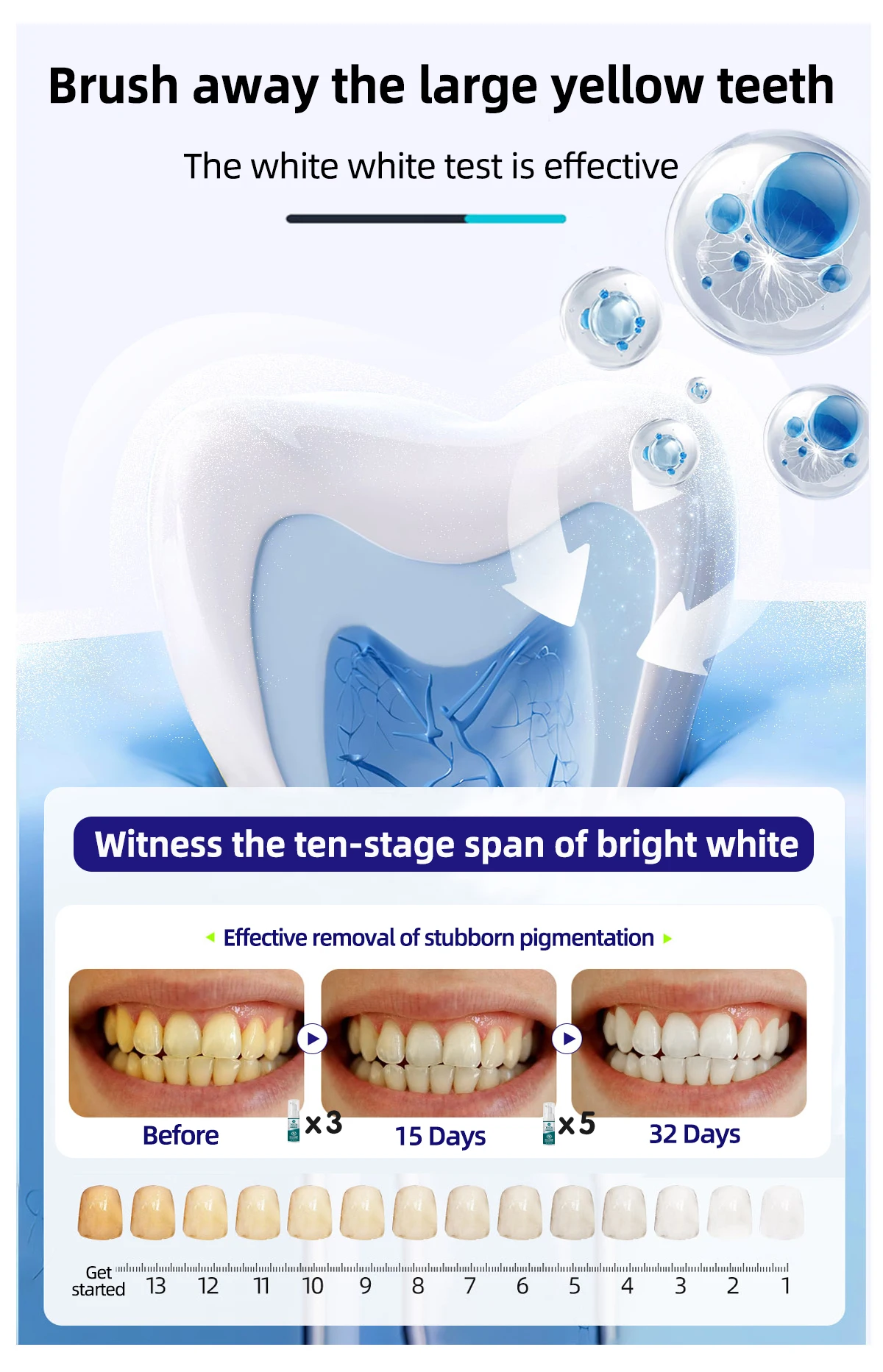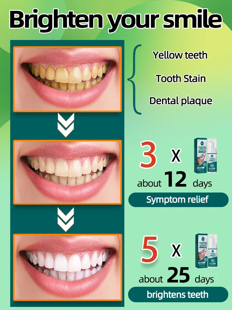 20 years of research, revolutionary internal and external whitening technology, dazzling white teeth, lasting freshness, effectively remove yellow teeth stains, bright white teeth.