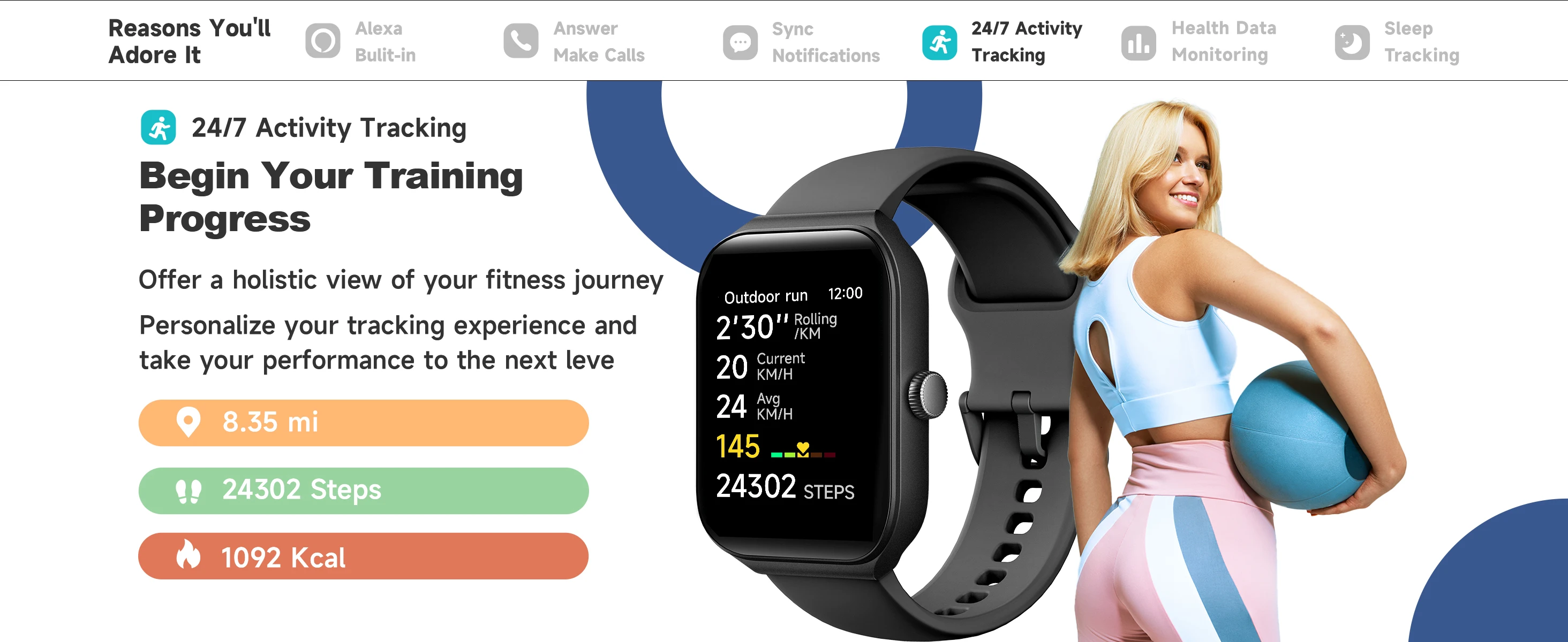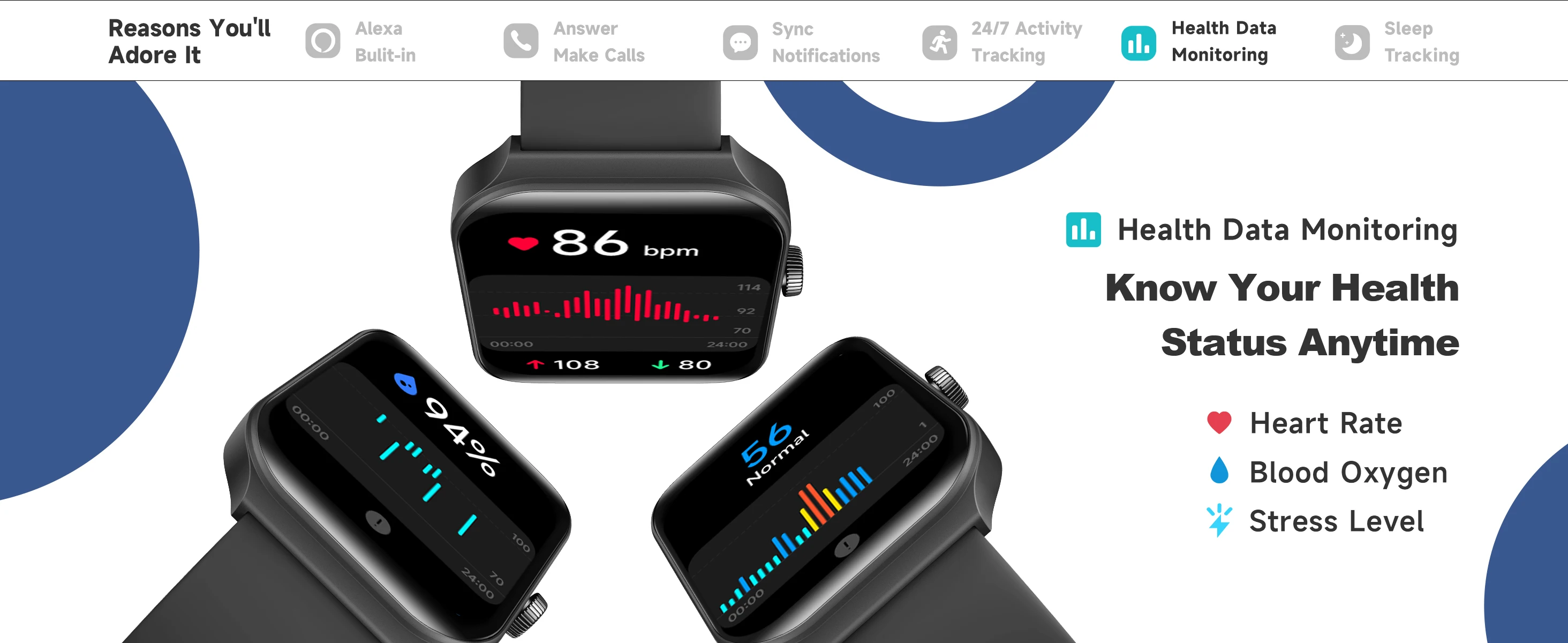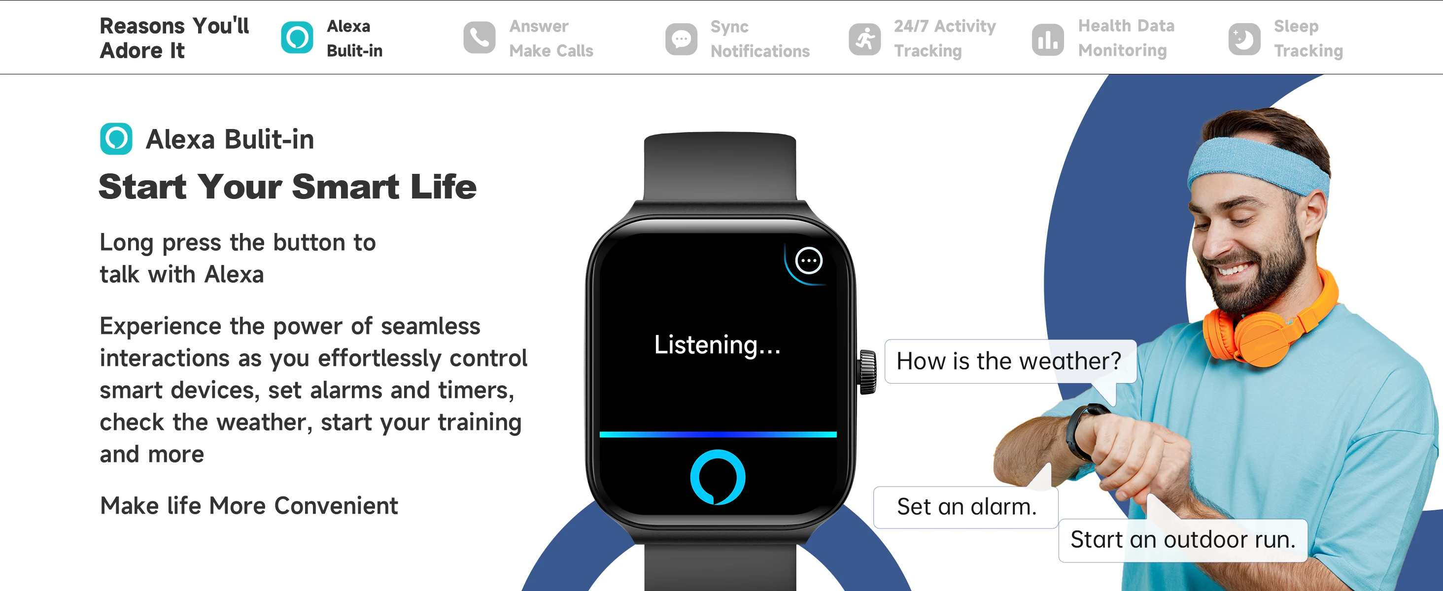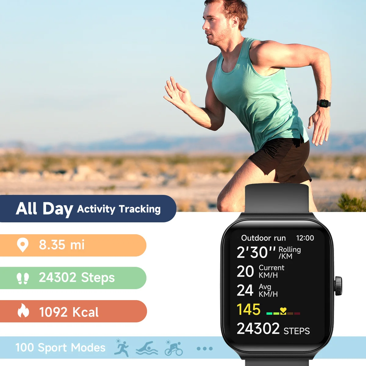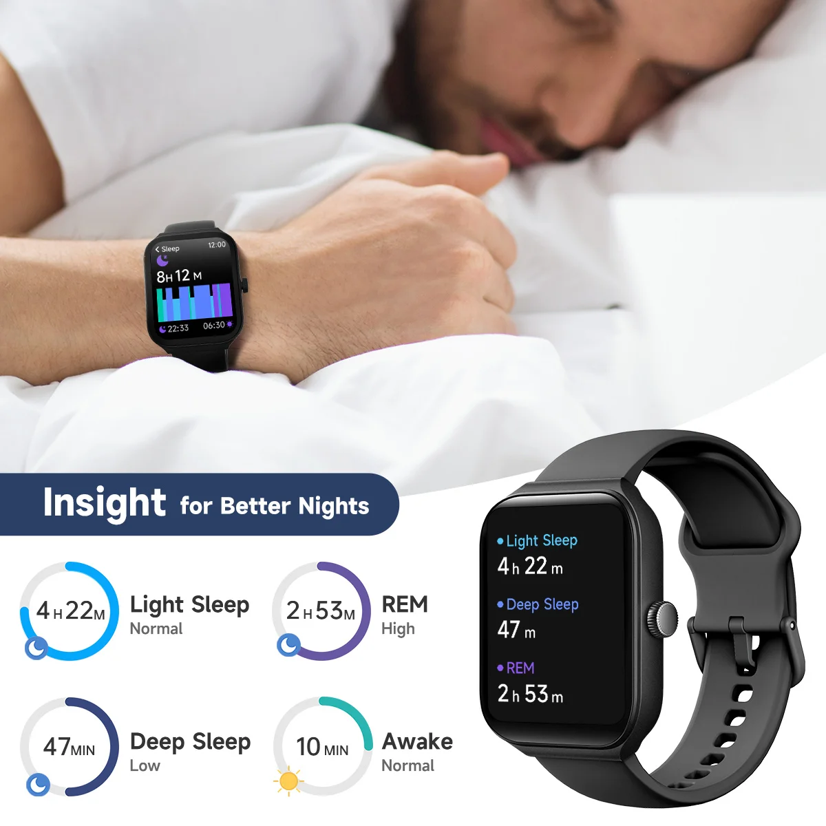 TOOBUR 1.95″ Smart Watch Smart Voice Assistant Answer/Make Calls Heart Rate Monitor Smart watch Compatible Android iOS