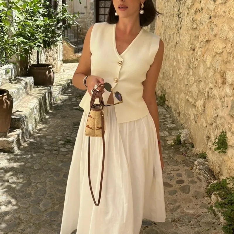 TRAF Woman Knit Vest Top Cropped Sleeveless Vests for Women 2024 Button Summer Vest Top Female Holiday Knitted Short Tops