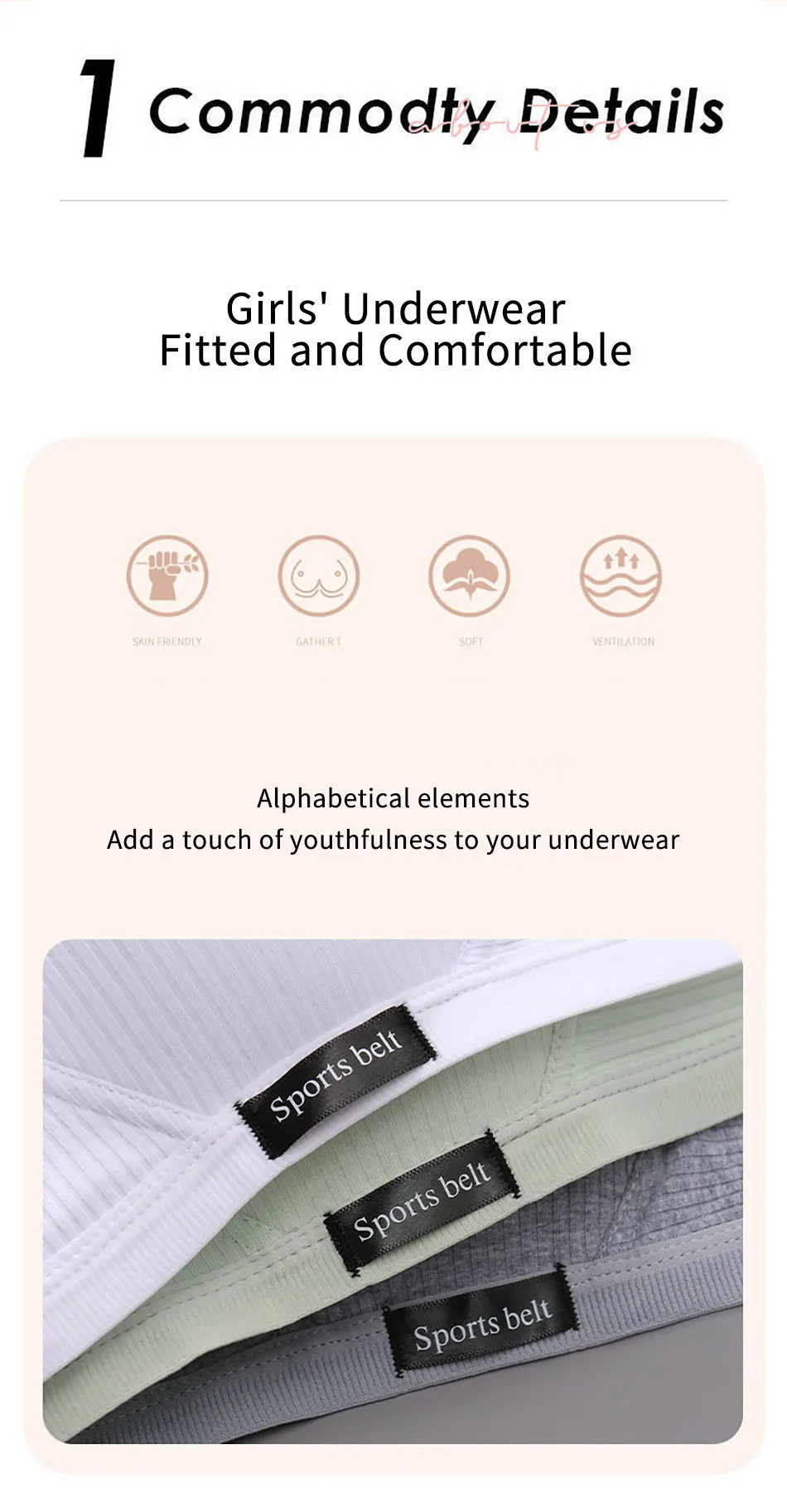 Name: Training Bra for Developing Girls without Steel Rings Comfortable and Traceless Small Bra Pure Cotton Thin Sport Underwears