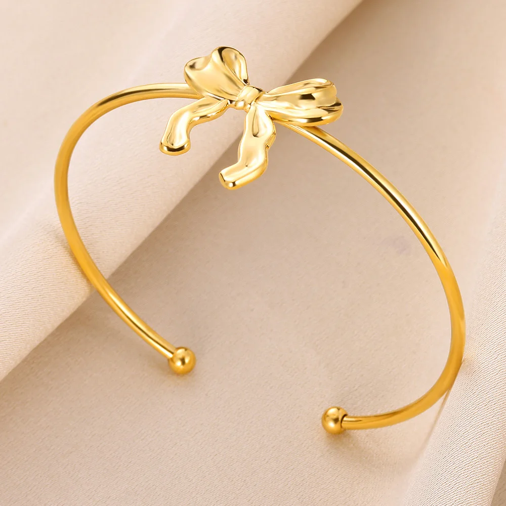 Trendy Bow Tie Cuff Open Bracelet For Women Girls Stainless Steel High Quality Pulseras Gold Color Bangle Jewelry Best Gift