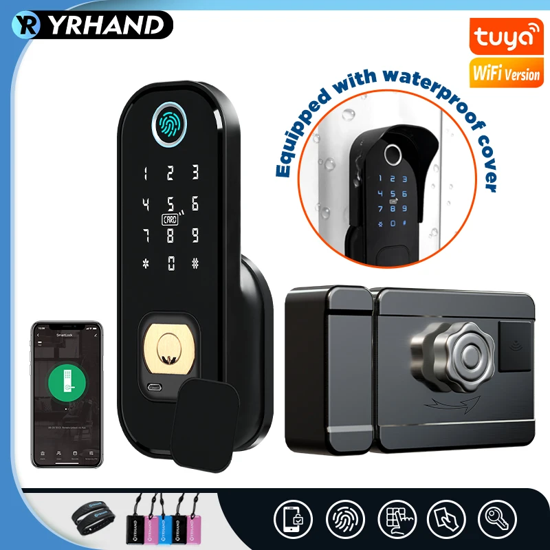 Tuya Smart lock Waterproof Wifi Fingerprint Rim Lock Smart Card Digital Code Electronic Door Lock For Home Security Mortise