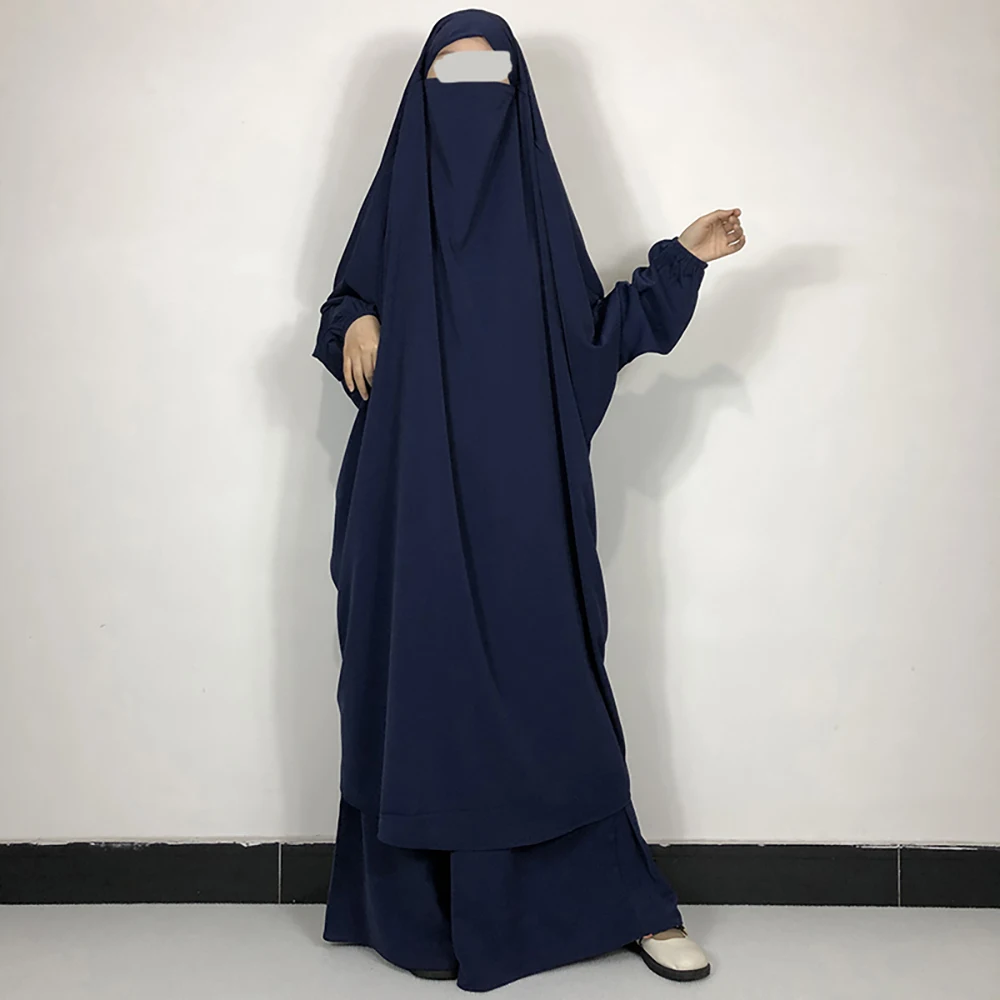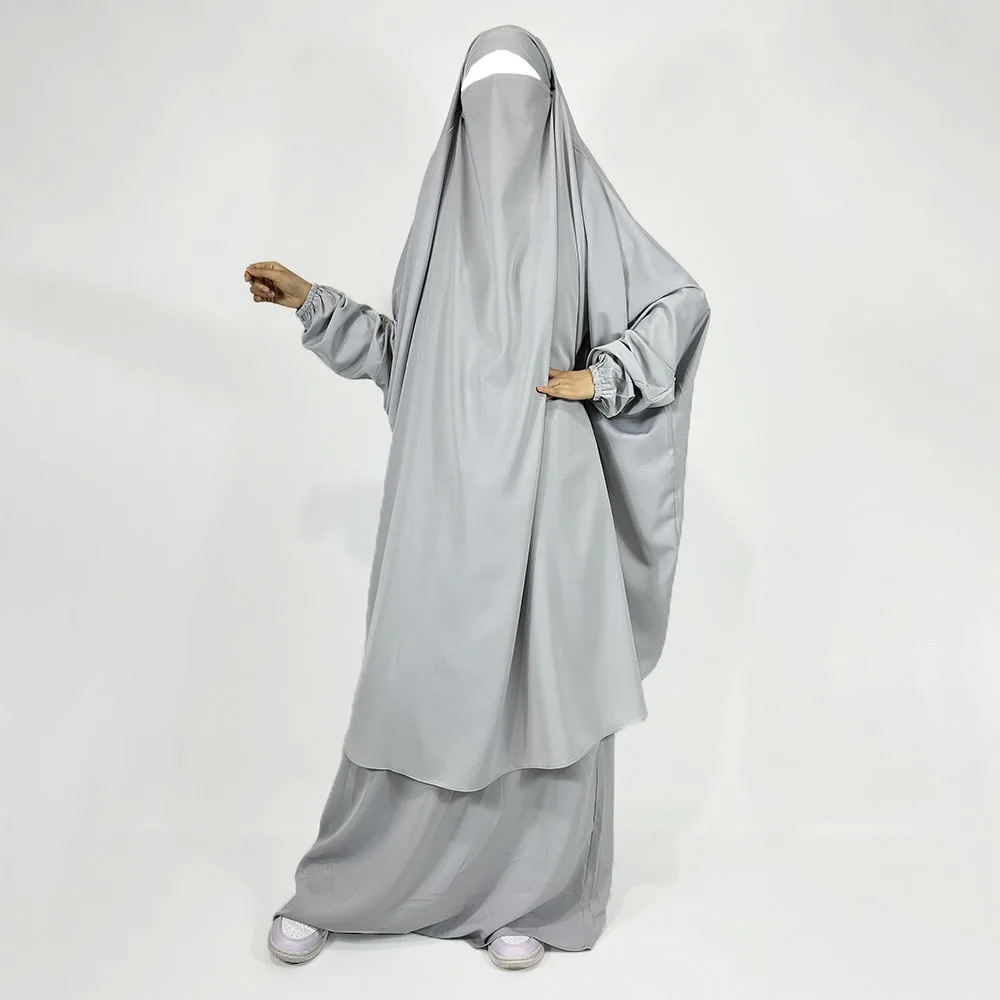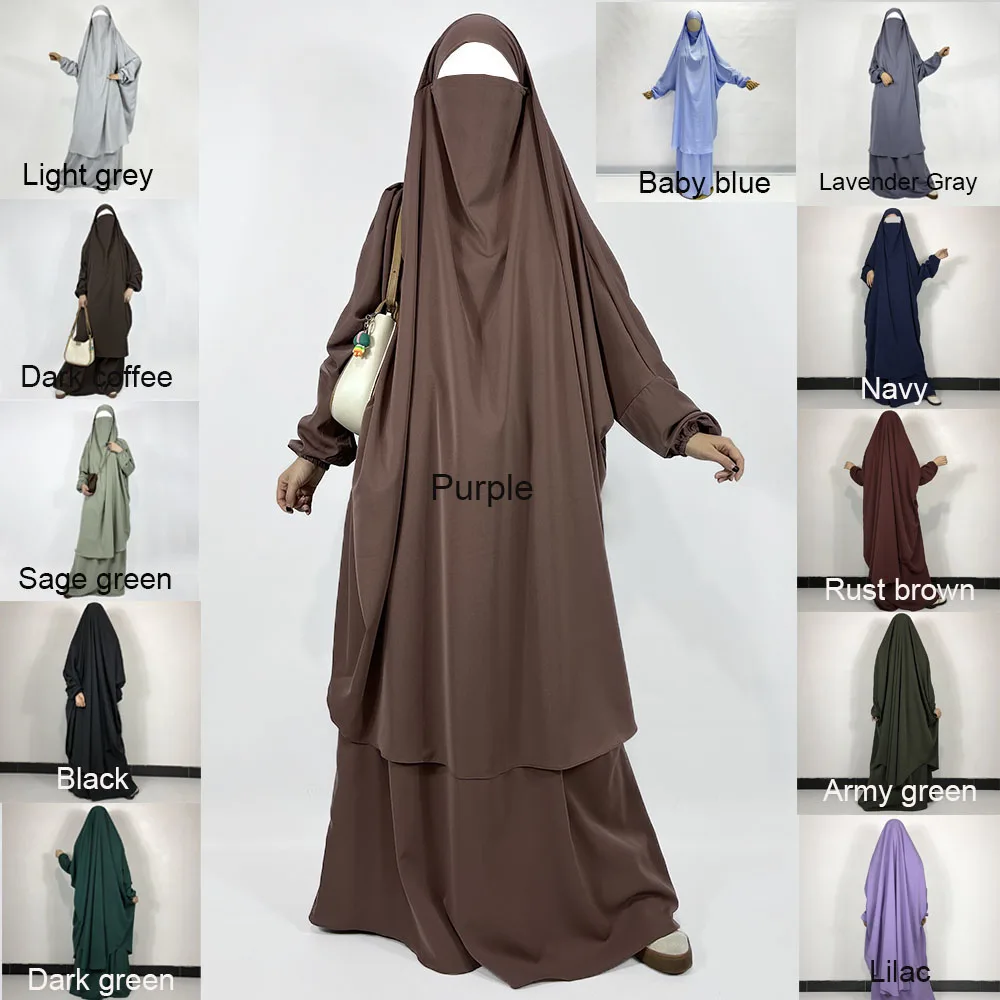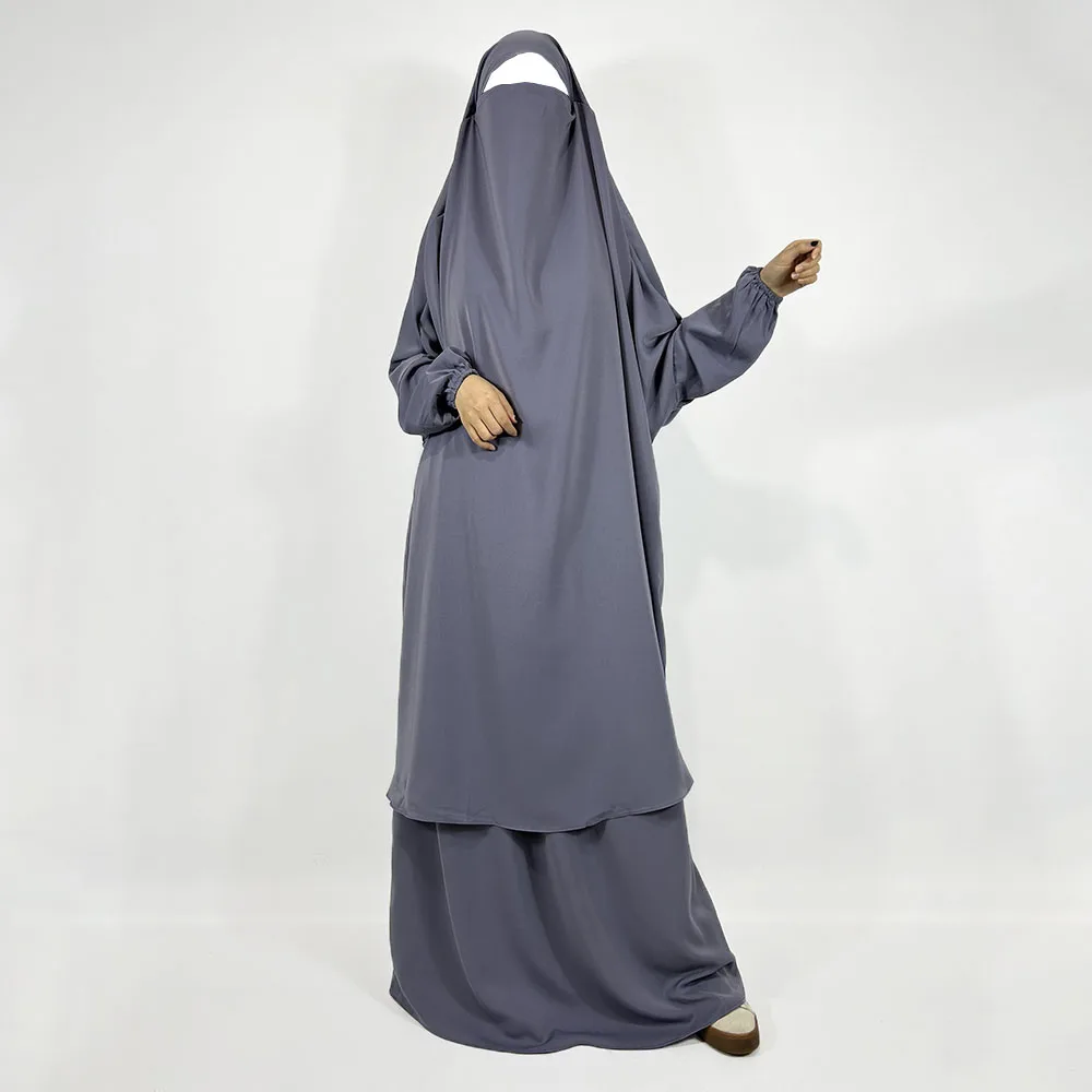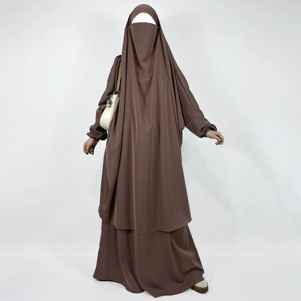 Two Piece Jilbab Skirt With Pockets Niqab Strings High Quality Nida Lightweight Breathable EID Ramadan Muslim Women Prayer Set
