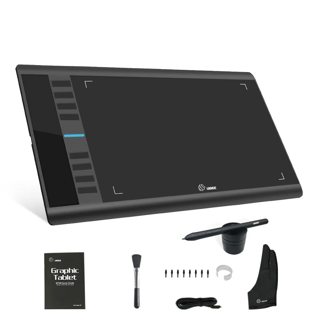Ugee Digital Graphics Tablets M708 V2 “10×6” inch Drawing Tablet for painting 8192 Pressure with Passive Pen Anti-fouling glove