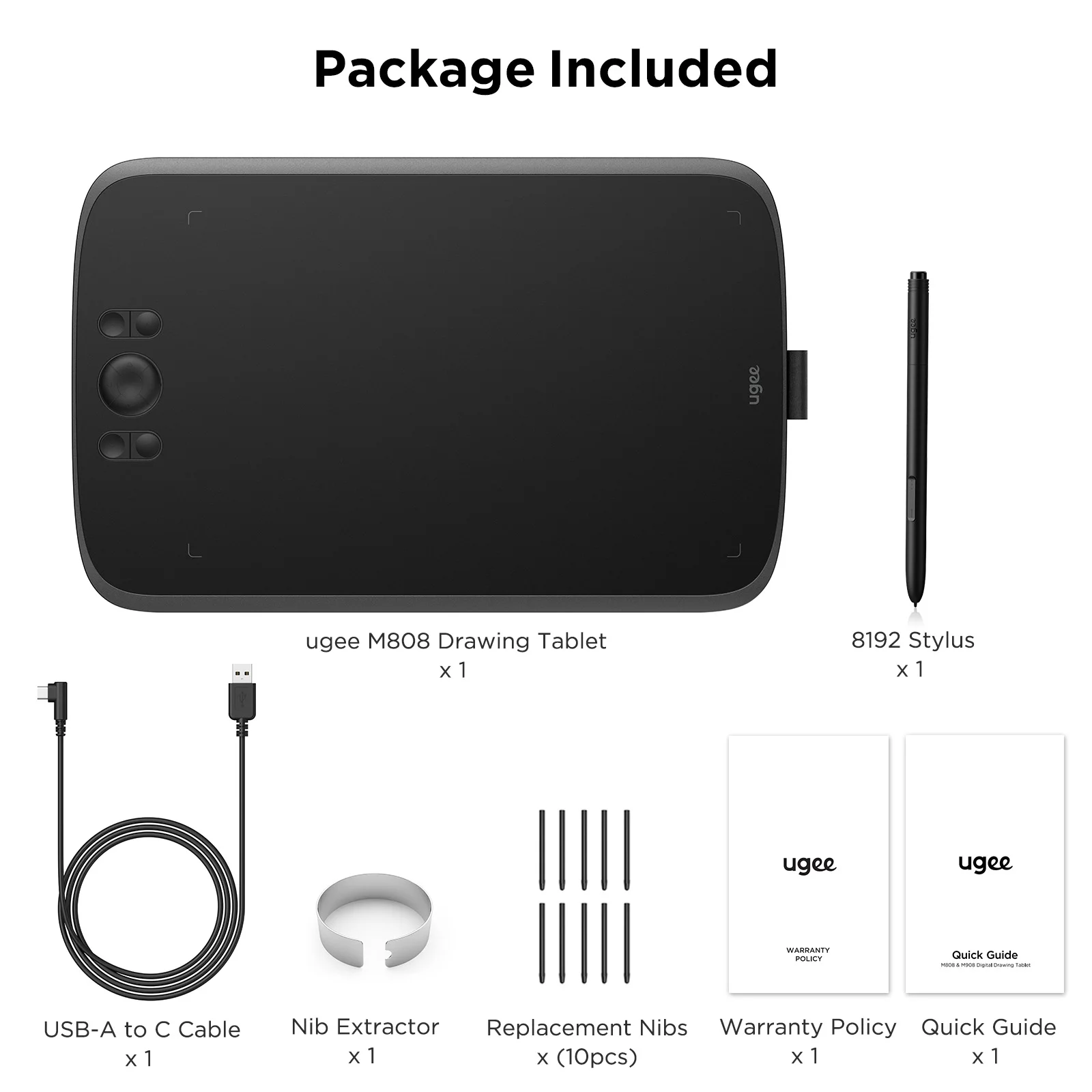 Ugee M808 Drawing Tablet Graphic Table 10 inch Digital Pen Board Writing Pad for Android PC Windows Children Professional Design