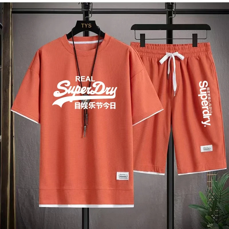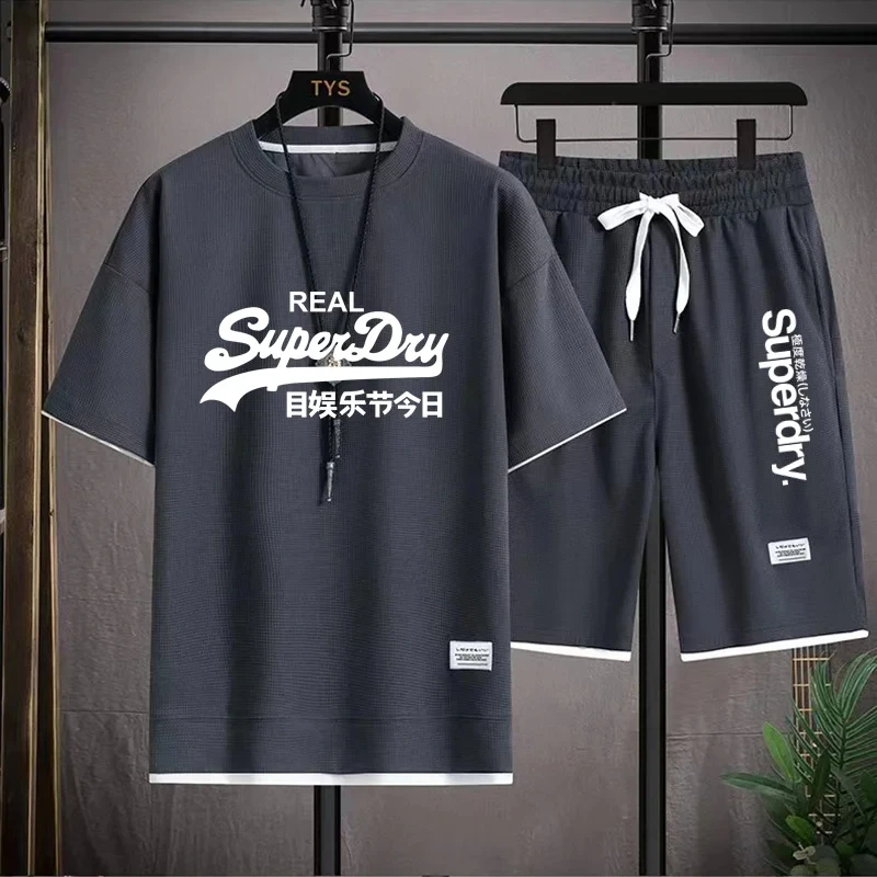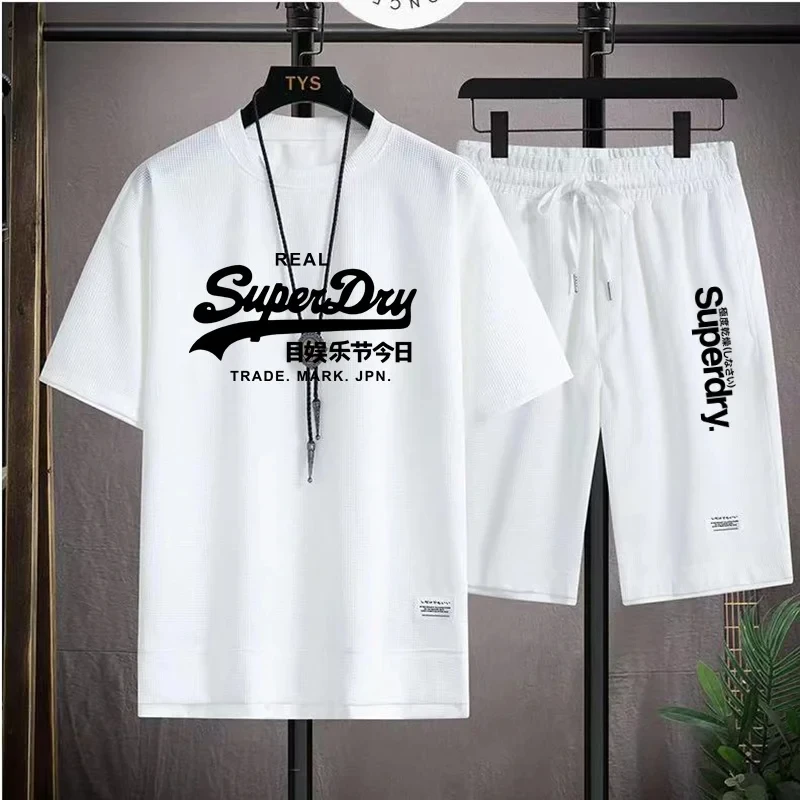 Uk Superdry Men’s Short Sleeve T-shirt and Sports Shorts,Casual Jogging Pants Set,Ultimate Dry Sportswear,Summer,2 Pieces