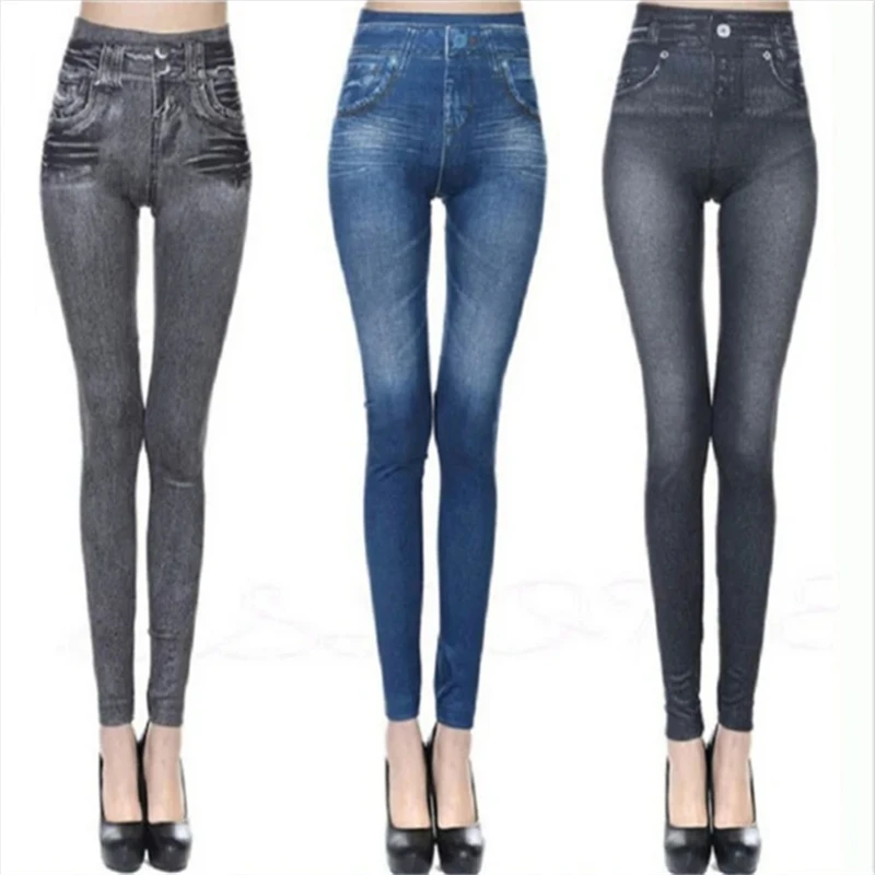 Ultra High Stretch Denim Inspired Leggings for Women High Waist Slim Fit Lifted Buttocks Tight Pants for Women