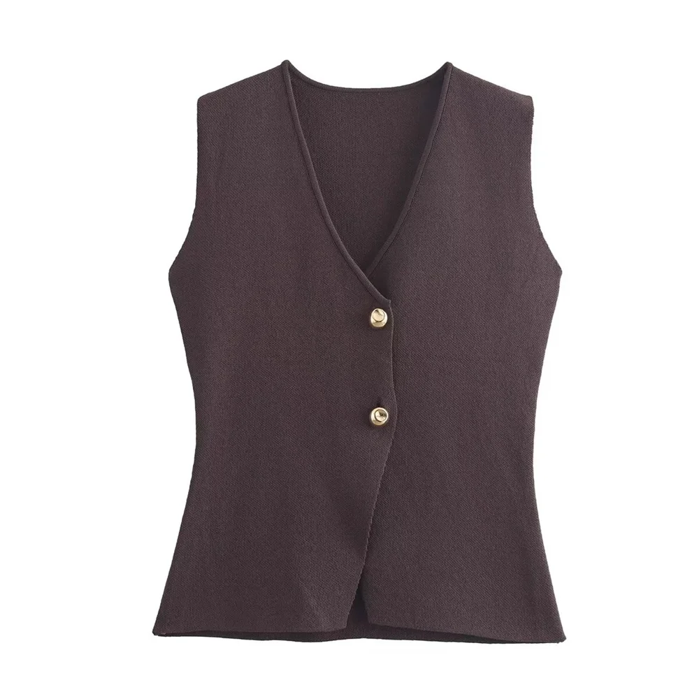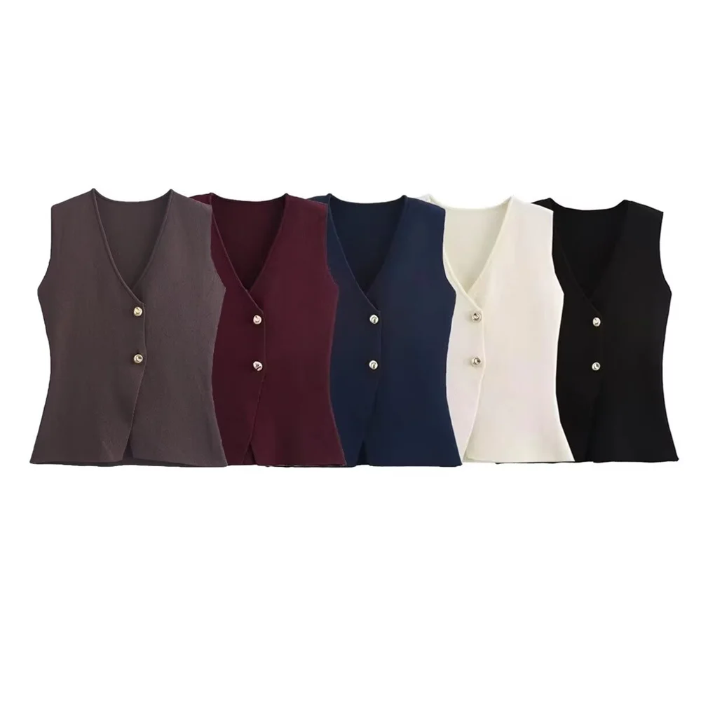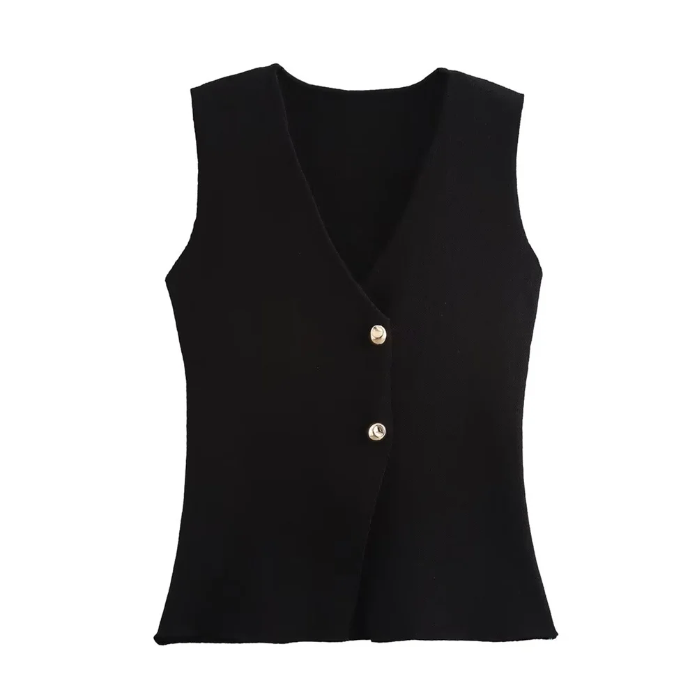 UNIZERA2024 Summer New Product Casual Women’s Wear Simple and Fashionable Gold Button Knitted Tank Top