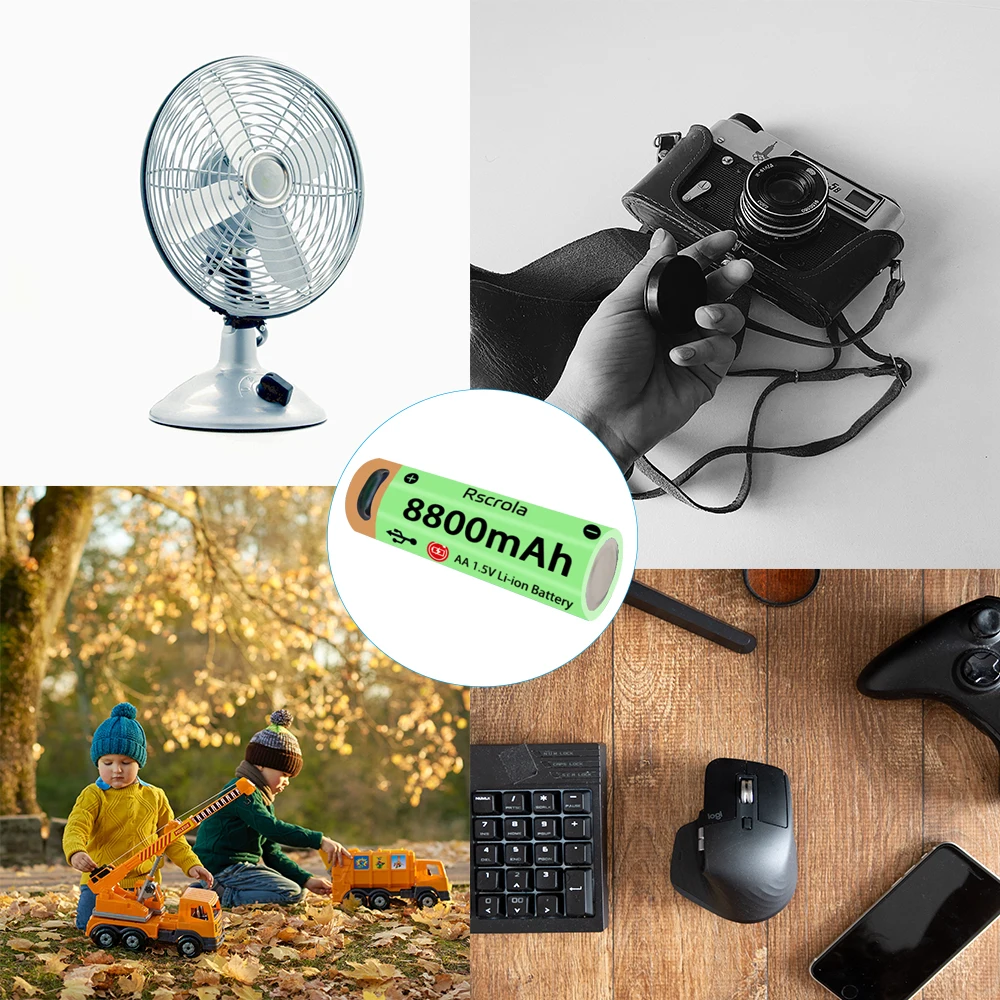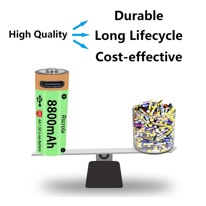 1. Quality: 8800mAh AA Li-ion rechargeable batteries.