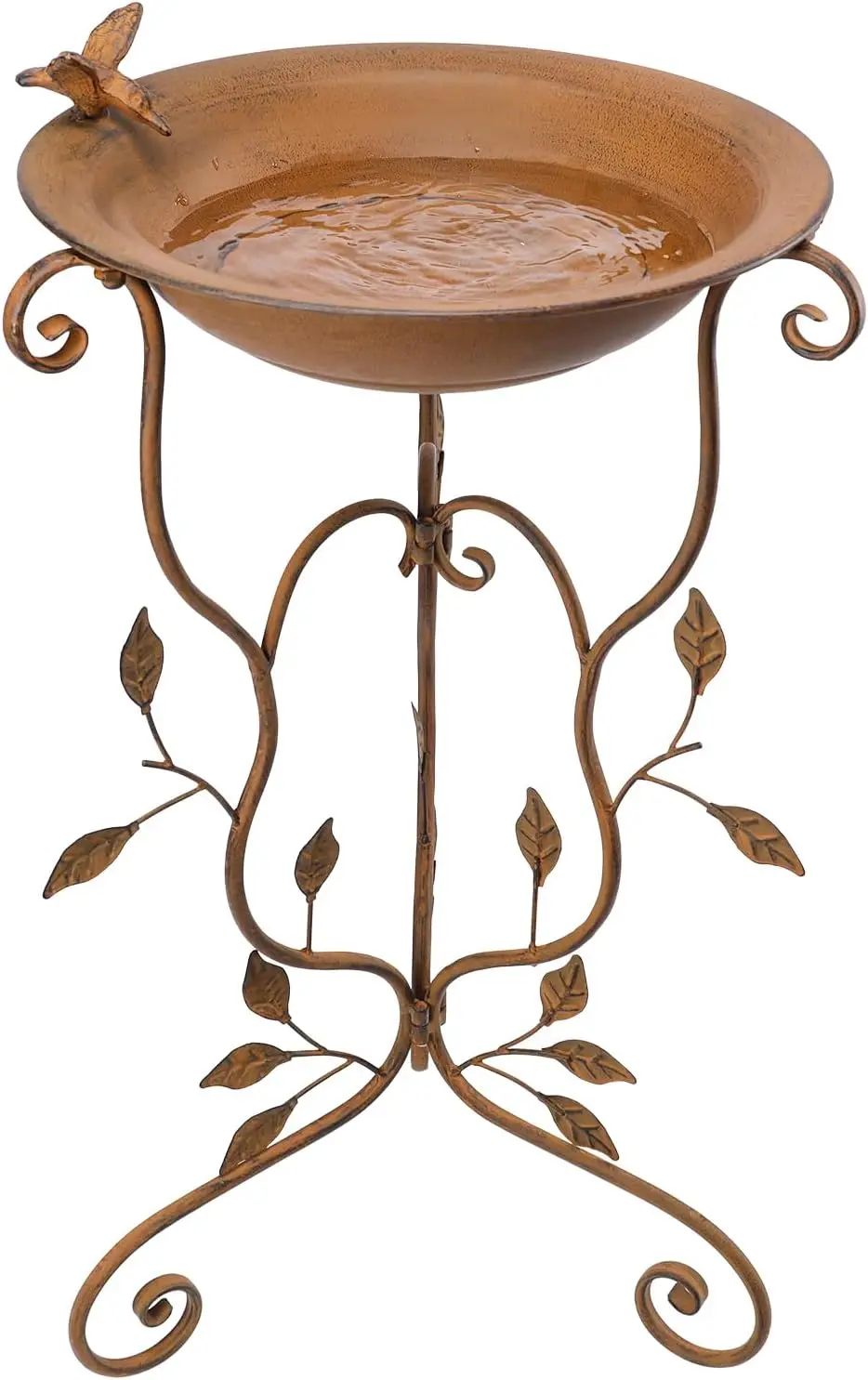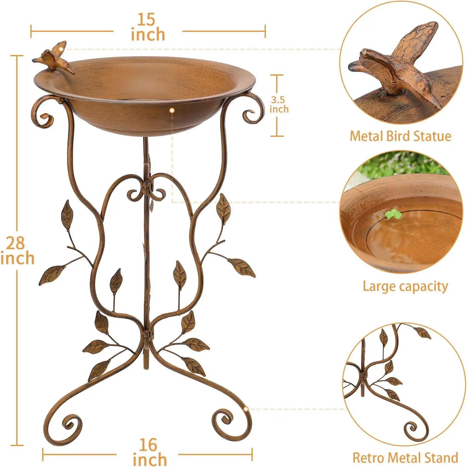 - Metal bird bath is designed with an elegant and antique retro copper style, free fmetal standing make it move easily, a nice additions to your garden, yard, patio, lawn, or other outside space