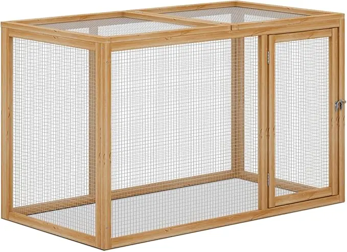 - Wire-Style Enclosure: with our rabbit hutch’s many screened walls there is a ton of ventilation for your animals to be able to enjoy the outdoors while staying protected from predators. The plated iron wire-style enclosure allows for proper ventilation and ease of viewing while giving your furry friend a rabbit playpen.