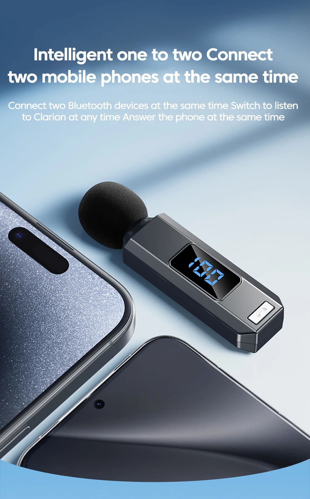 7: Intelligent one to two, Can Connect two Mobile Phones at the same time;