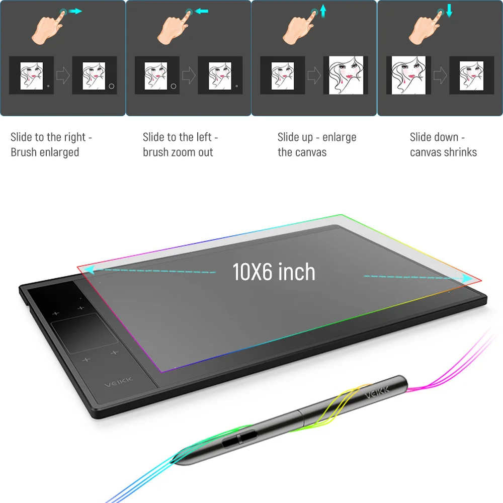 Ultra Large Drawing Area :10×6 inch active area gives you a thinner but smarter, more sensitive platform where you can show your personality and talent on.