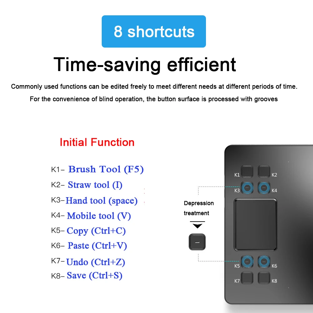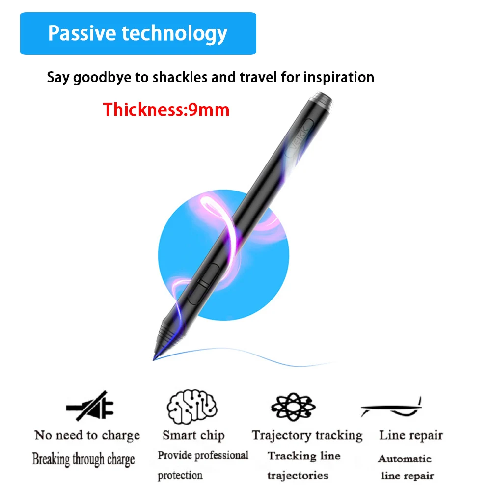 Intelligent Passive Technology: 8192 levels battery-free with smart chip. Trace line trajectory & Automatic line correction. Accurate and quick response with the pen drawing on the tablet.