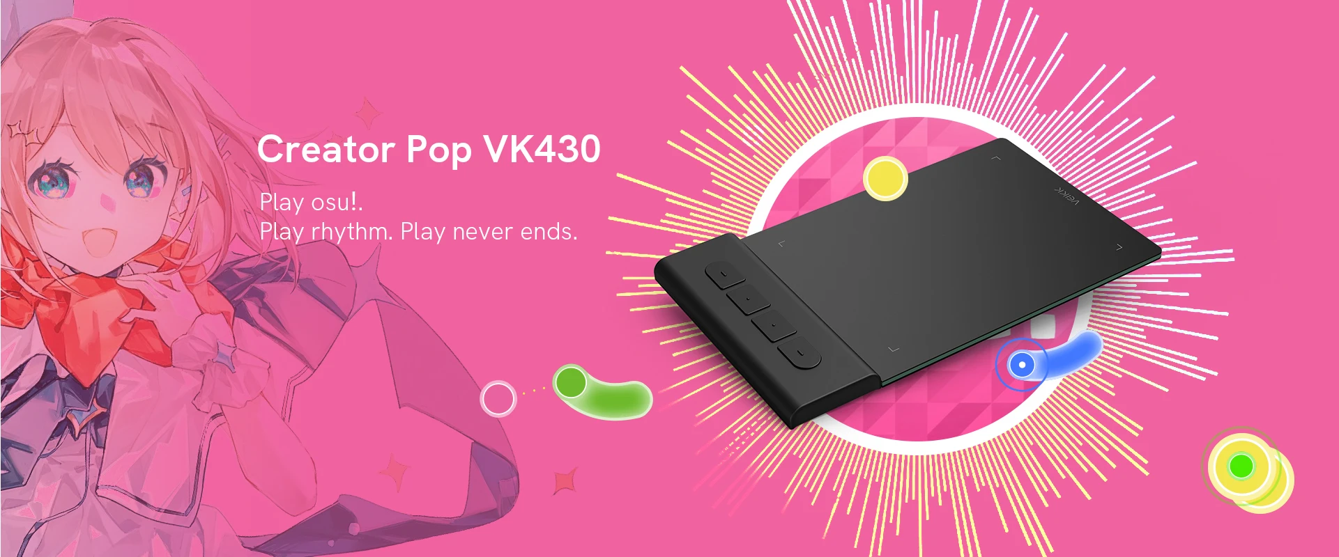Designed for OSU Gamer: The report rate of VEIKK Creator Pop VK430 pen tablet is higher to 290 PPS, which makes it easier to control the line quicker and smoother. The P05 Battery-free pen, allowing you constant uninterrupted playing OSU. 8192 level of pressure sensitivity can identify any subtle strokes, accurately determine the mouse position, and hit the rhythm. To play faster, driver installation recommended.(Pls don't switch to mouse mode on driver)