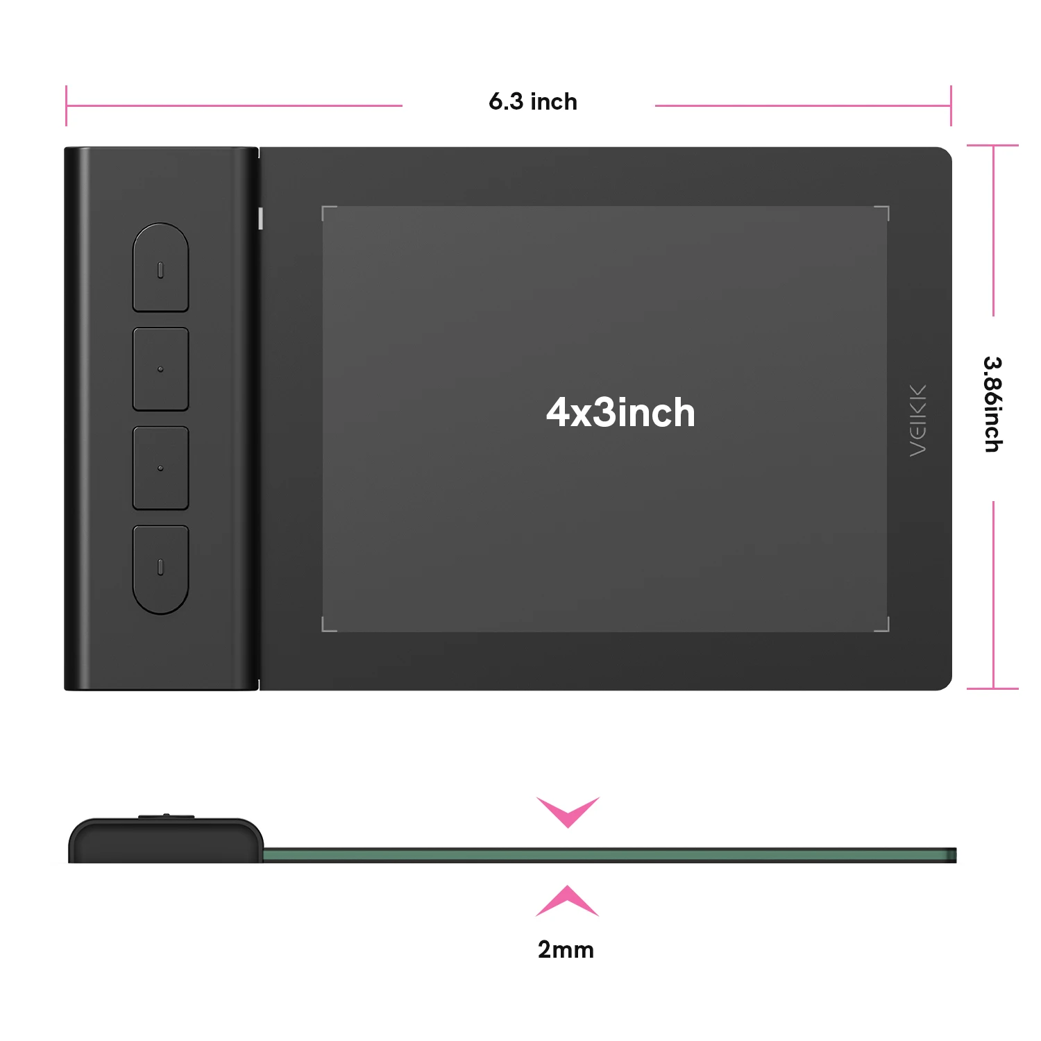 Ultra-thin and Ultra-lightweight: VEIKK Creator Pop VK430 pen tablet surface is thinner to 2mm, with 84g lightweight and a 4×3 inch active area.