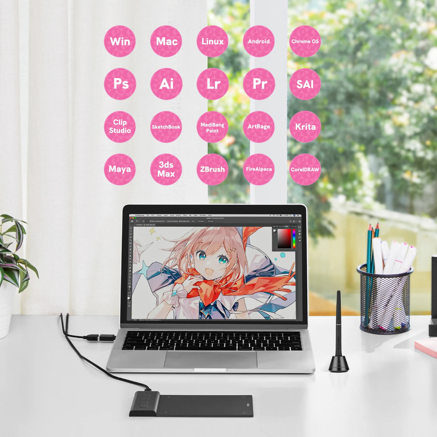 Efficient and Ergonomic: Creator Pop VK430 pen tablet comes with 4 customizable Express Keys that allow you to switch to a different program or favorite shortcuts like undo or zoom in/out at your fingertips on the driver. Get work done efficiently and save your time.