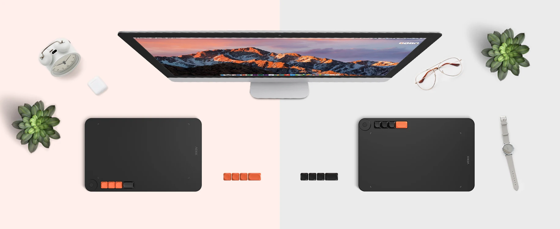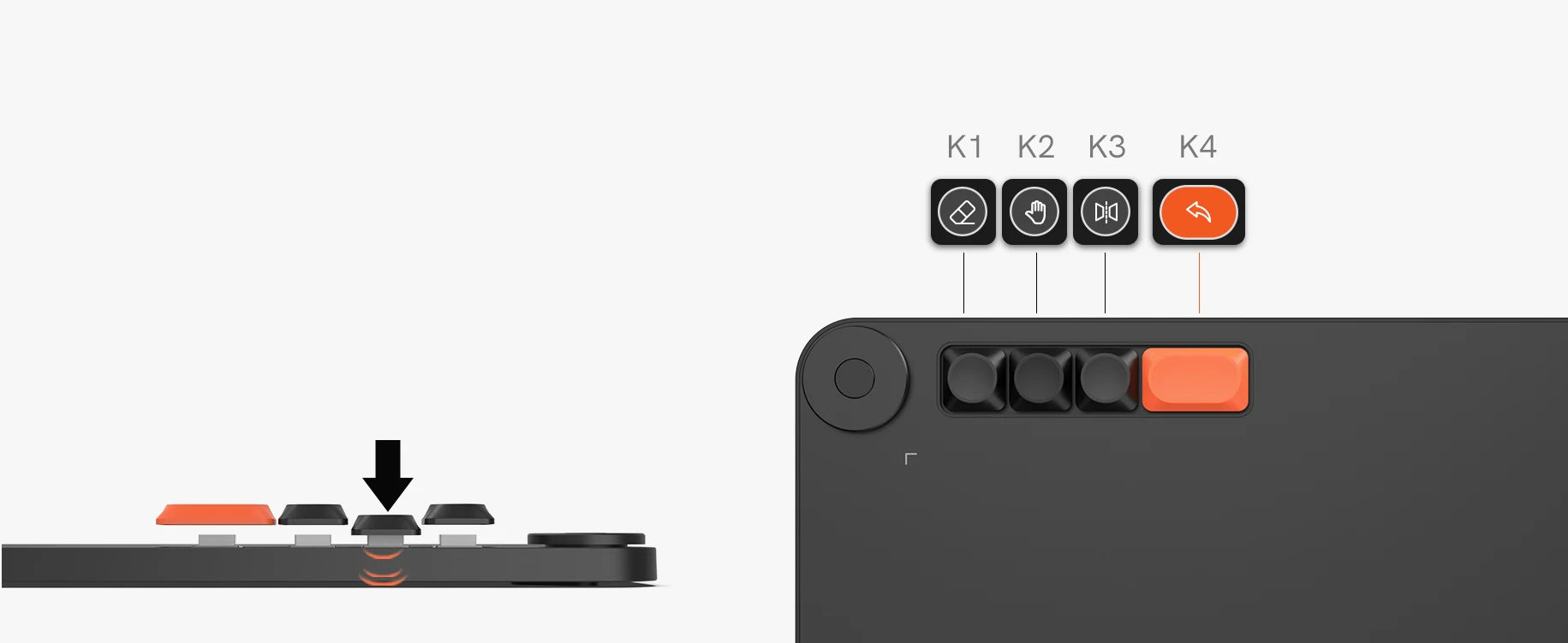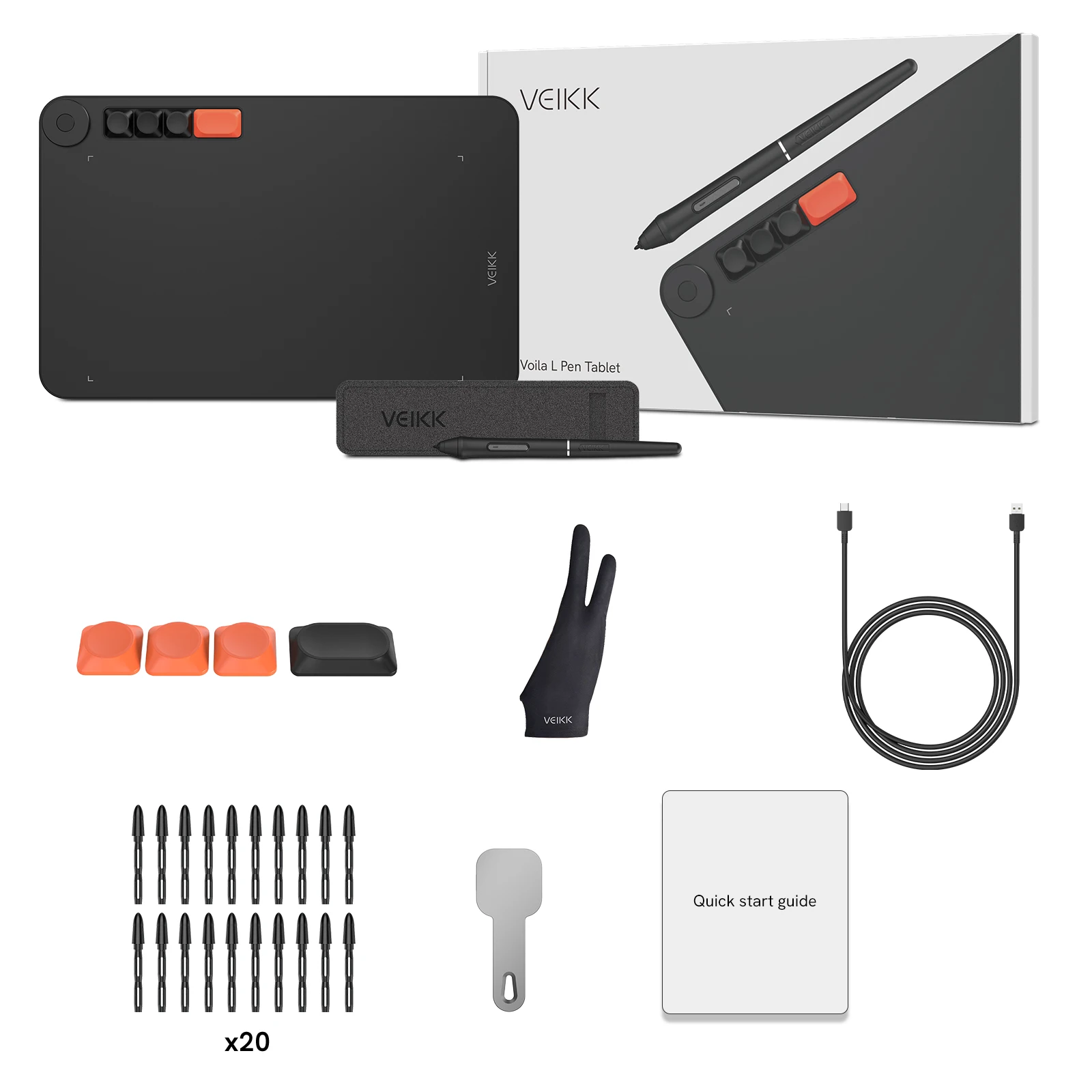 The Voila L pen tablet features 4 customized shortcut keys that are much more like the key on your keyboard, which delivers a familiar mechanical, comfortable and ultra-precise typing feel. Each key is customizable for the creation of personal presets.