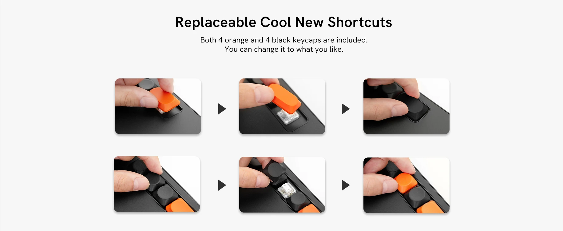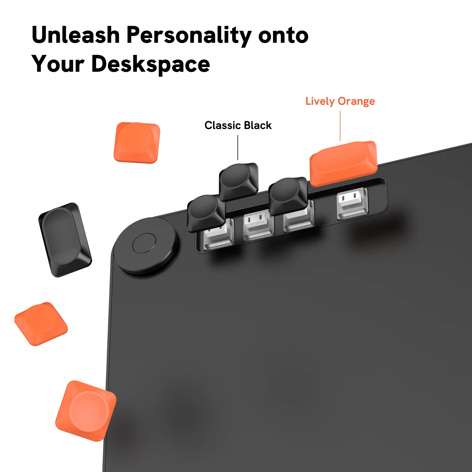 Unleash personality onto your desk space and Own both the fresh keycap color with Lively Orange and Classic Black. And you can DIY the exclusive keycap, let your true self shine with a statement desktop aesthetic.