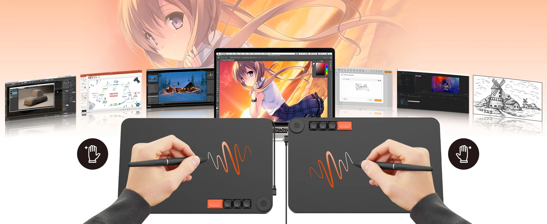Suits for both right and left-hand users, ideal for professional artists, newbie designers, enthusiasts, and creators of all kinds. Meet all your needs for drawing, sketching, 3D modeling, photo editing, signing or e-learning.
