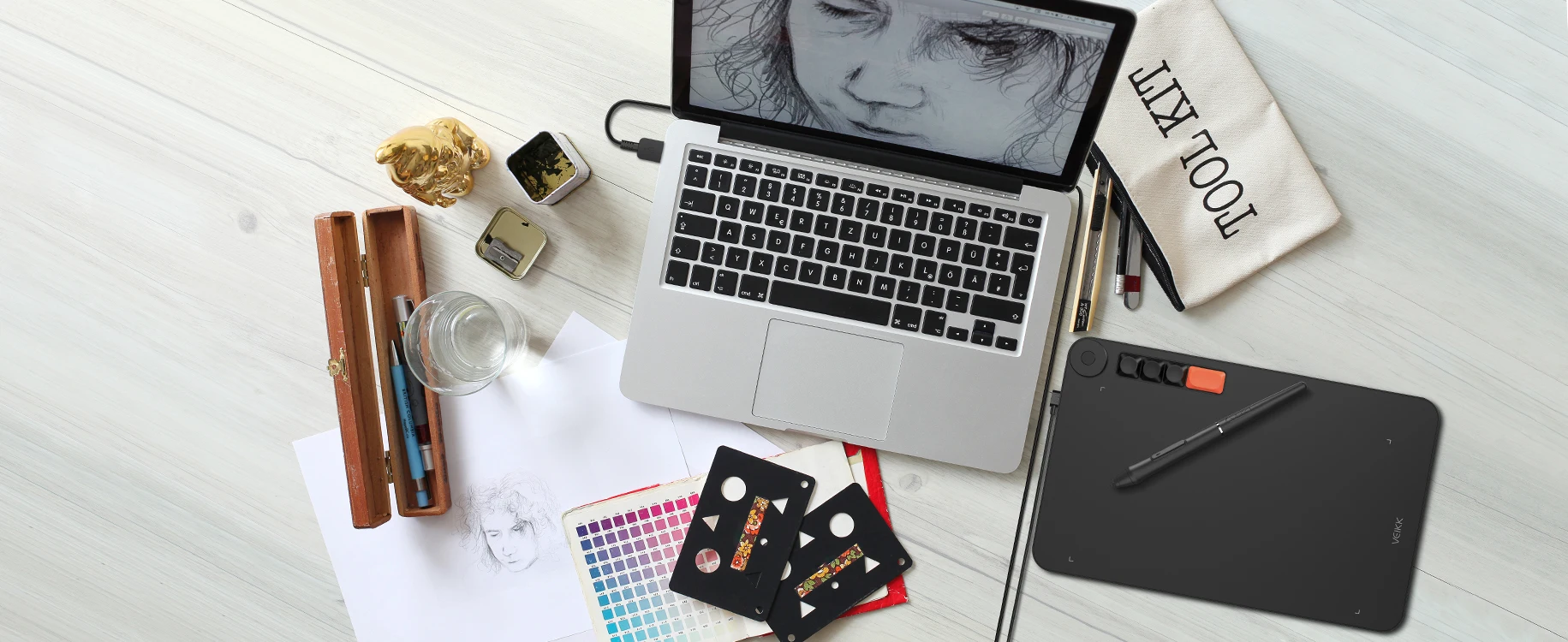 Compatible with most software, including Adobe Creative software, ibis Paint X, FlipaClip, Medibang, Autodesk Sketchbook, Zenbrush, Artrage, and more.