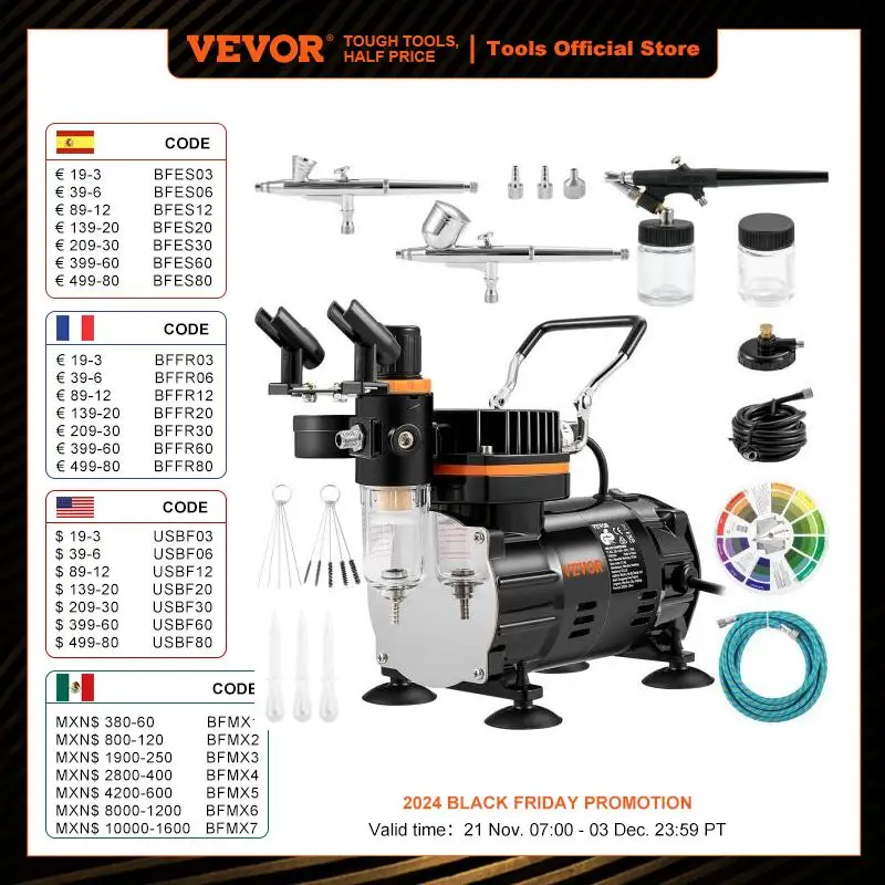 VEVOR Professional Dual-Action Airbrush Kit 120W Electric Spray Gun Air Brush Painting Set Art Nail Tattoo Makeup Model Sprayer