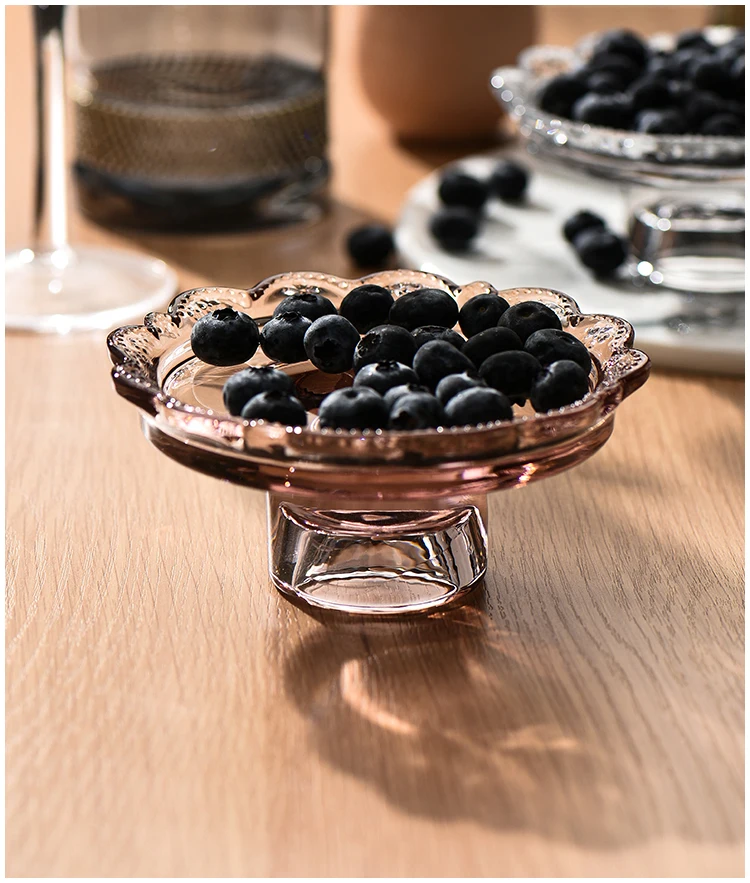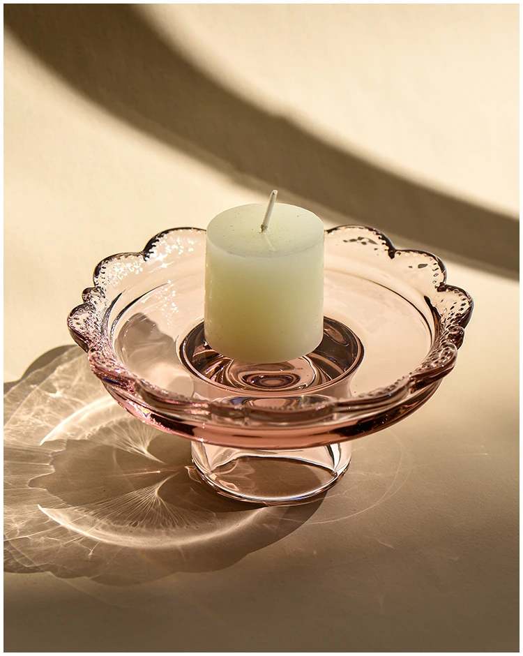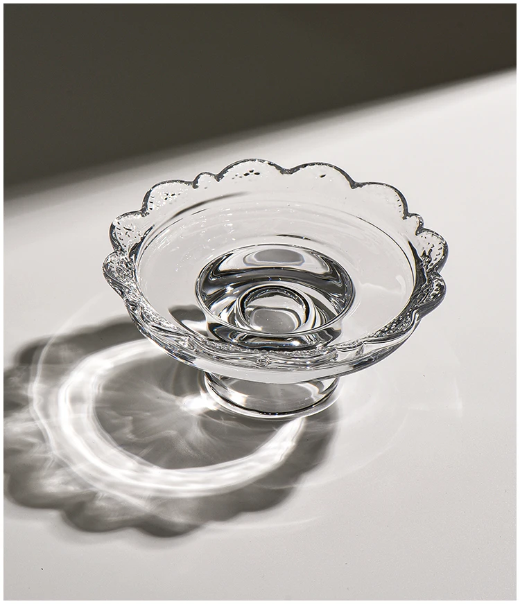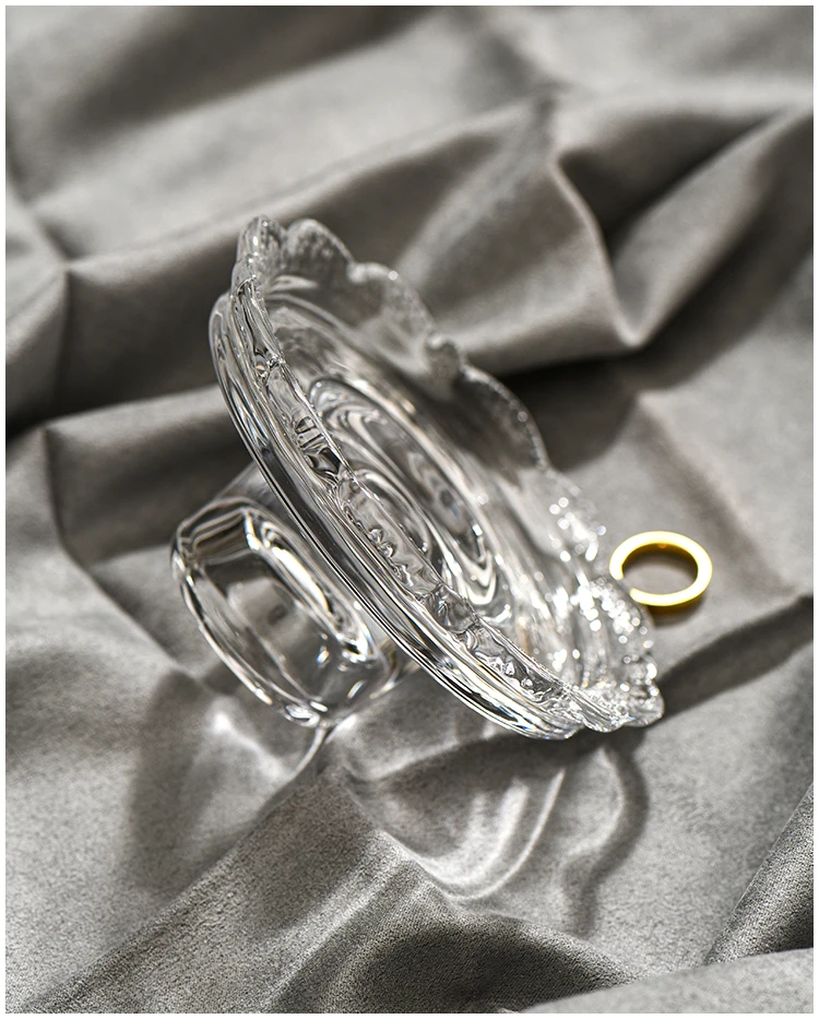 Vintage Transparent Glass Dessert Plate, Jewelry Display Storage Trays, Lace Candle Holder, Home Decoration, Photography Prop