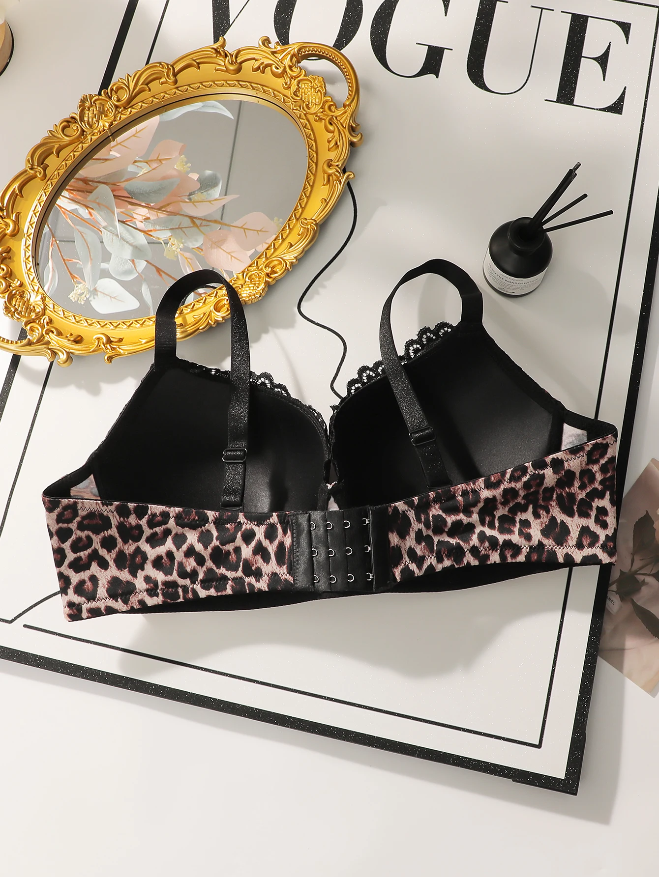 Viomisha Women Plus Size Bra with Leopard Print Push Up Bras with Steel Ring Underwire Underwear Everyday Brassiere 90D-105D