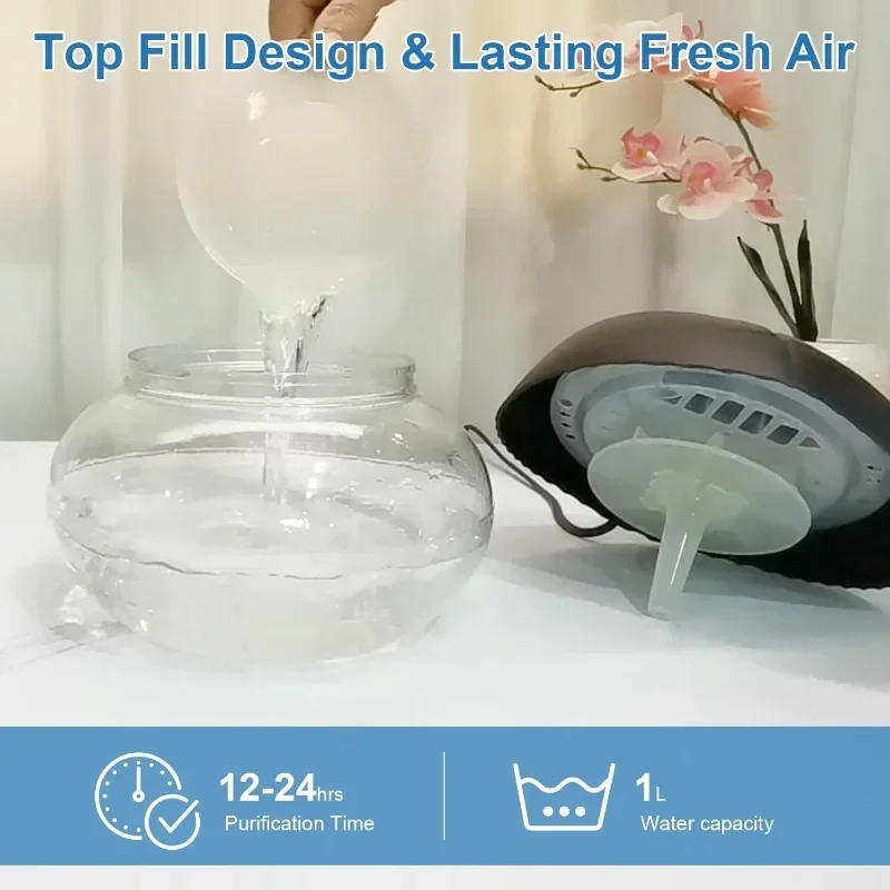 Water-Based Purifier Air Washer, Air Revitalizer & Freshener, Air Fresher with 7 LED Color Changing Light for Rooms (Black)