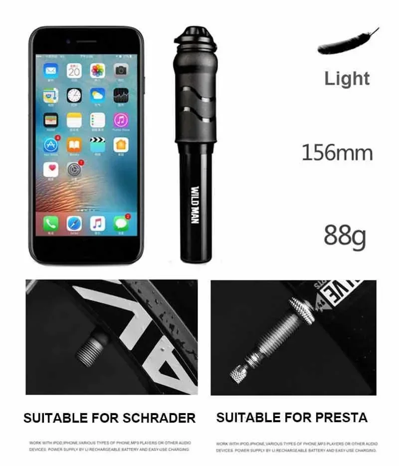 WILD MAN Alloy Mini Bike Pump Portable Cycling Air Pump Mountain Bicycle Air Pump Mtb Accesorios Schrader Presta Valve 100 Psi