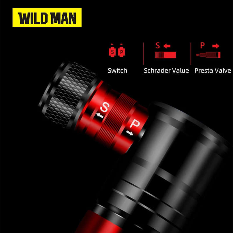 WILD MAN Bicycle Pump Alloy Hand Air Cycling Tire Inflator Schrader Presta Valve Mini Bike Ball 100 PSI