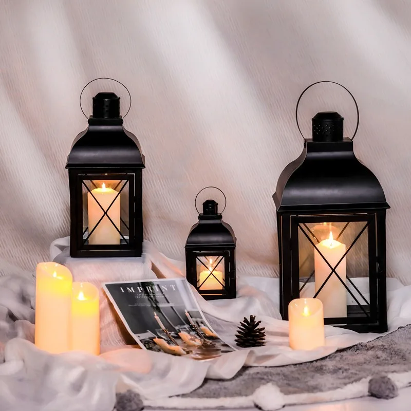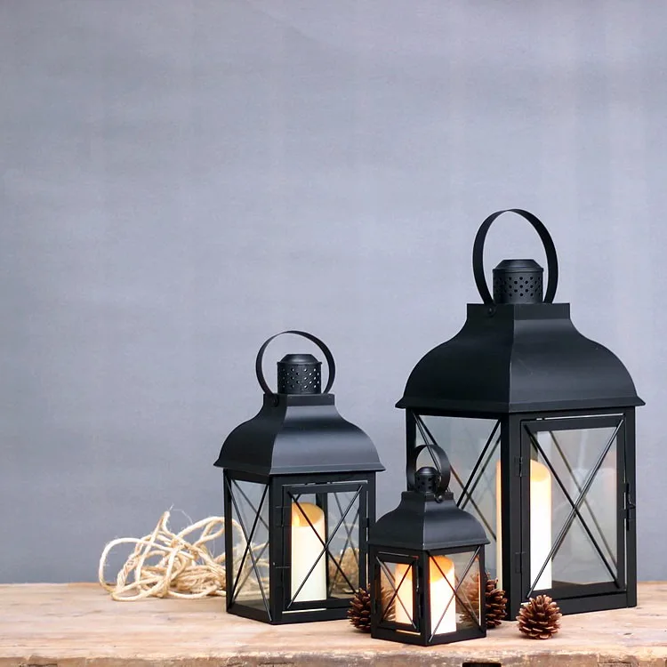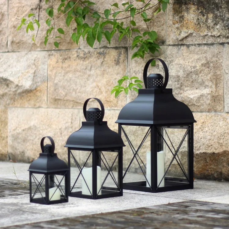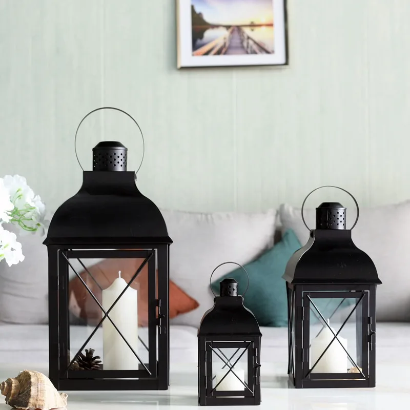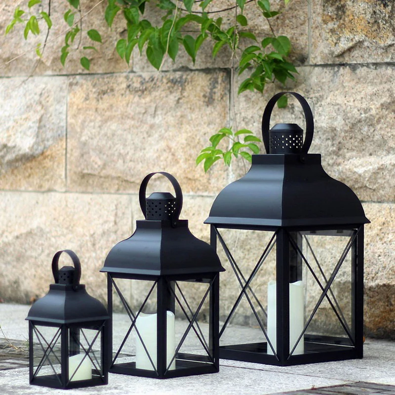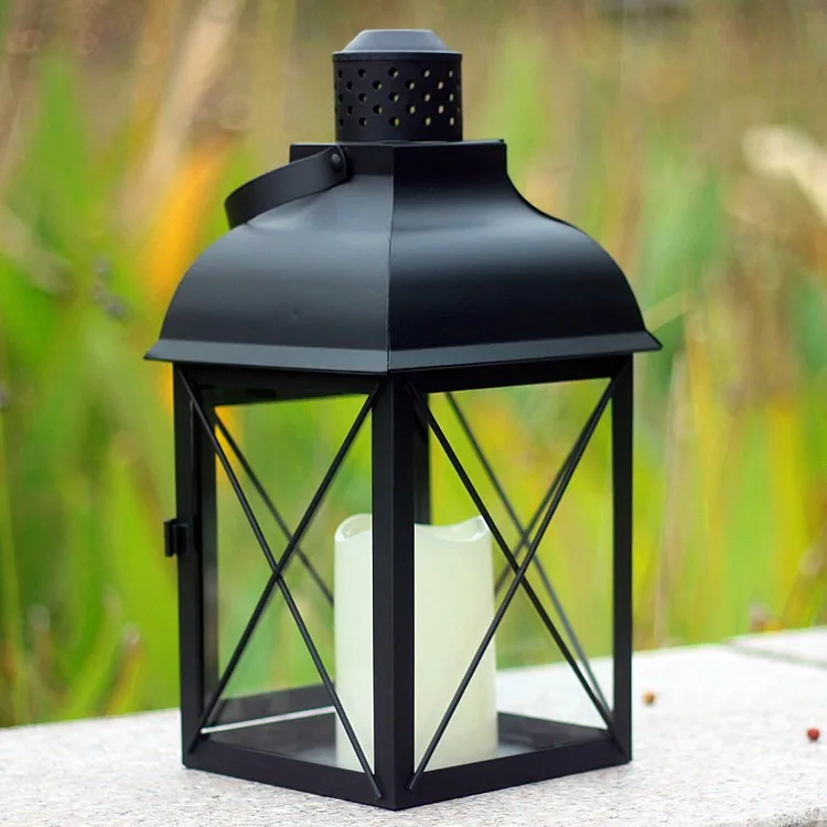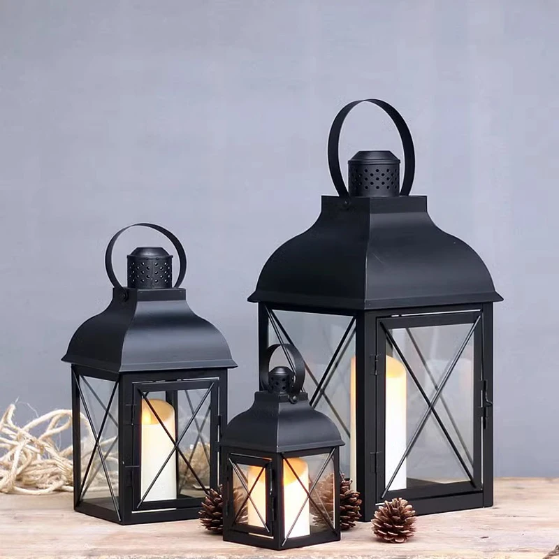 Windproof Candle Lantern Holder, Wrought Iron Glass, Wind Light, Candlestick Lamp, Retro, Handheld, Horse Lamp, Rustic