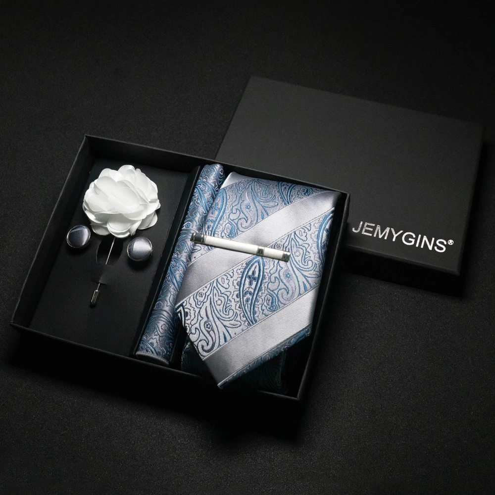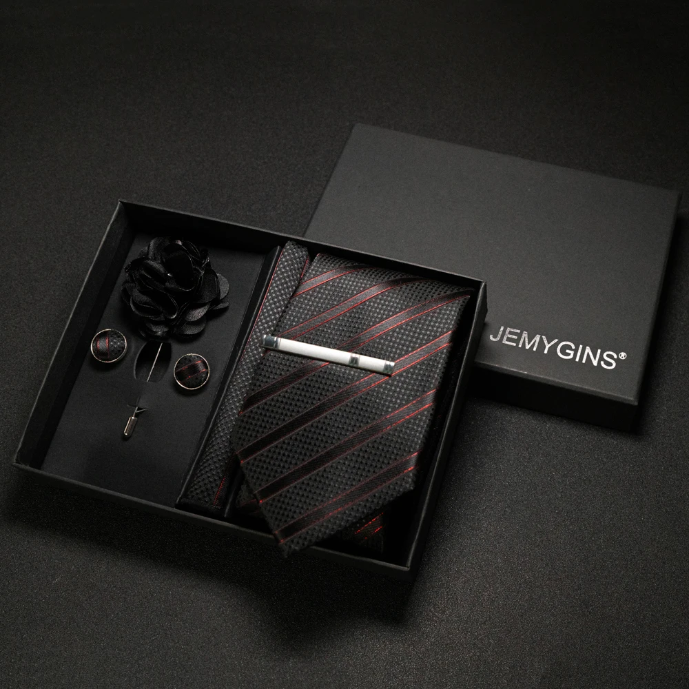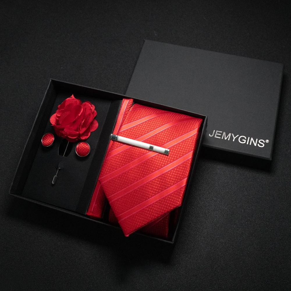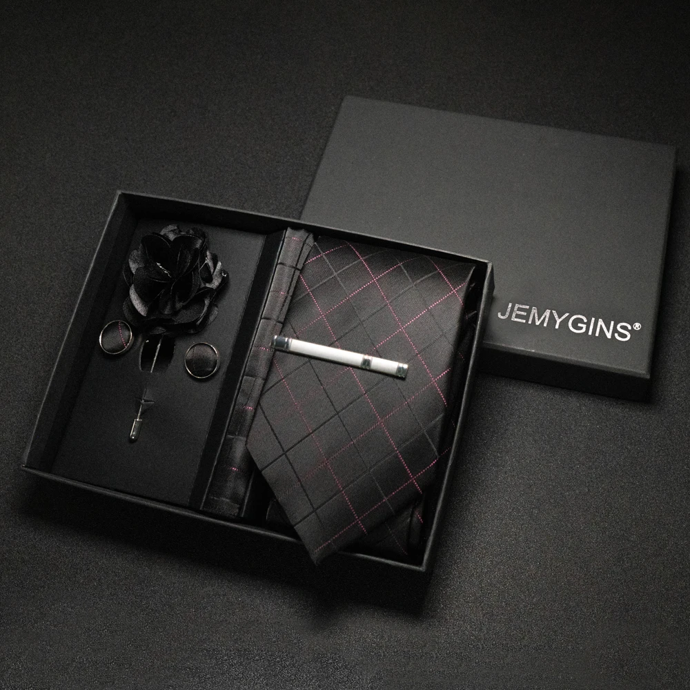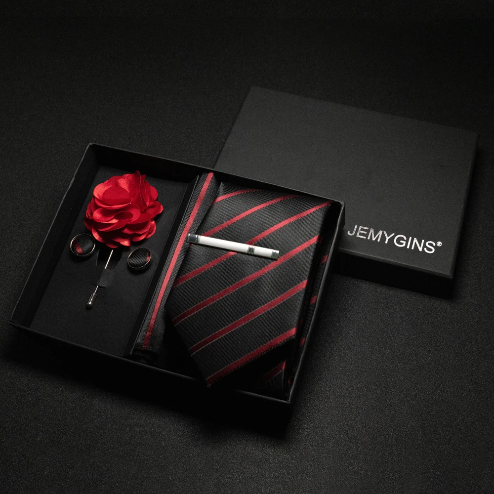 Wine red Men Tie Paisley Silk Tie Pocket Square Cufflink Luxury Gift Box Set Wedding Gravat Accessories Neck Tie For Men