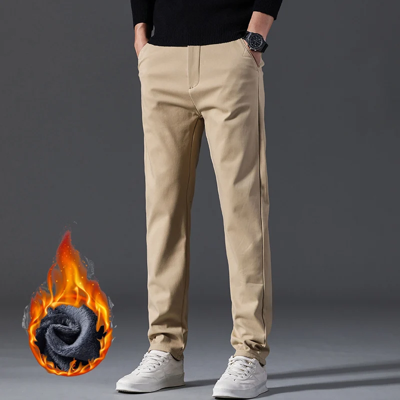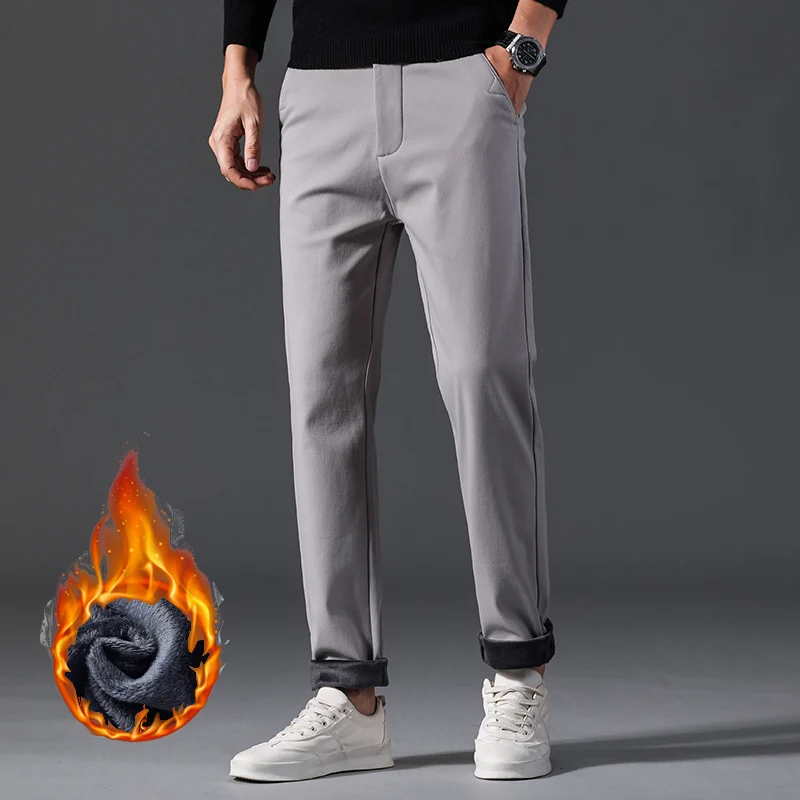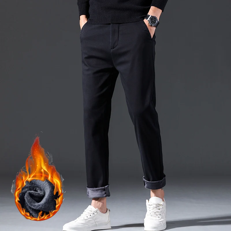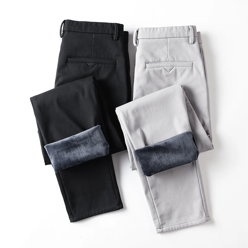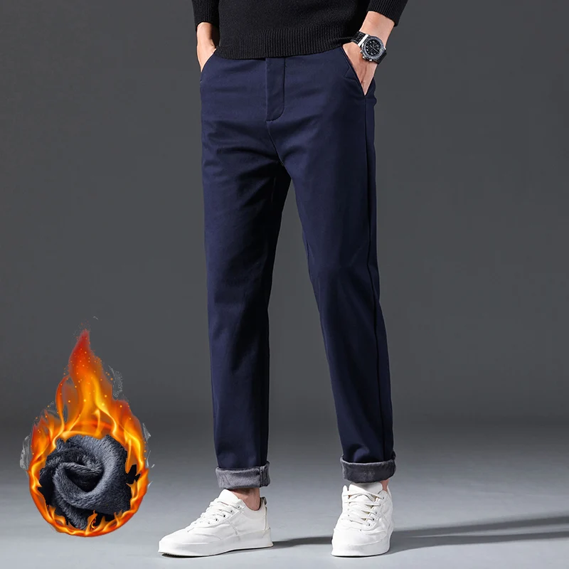 Winter Casual Men Classic Style Business Warm Plush Trousers Regular Thick Fur Pants Male Fleece Elastic Straight Formal Pants