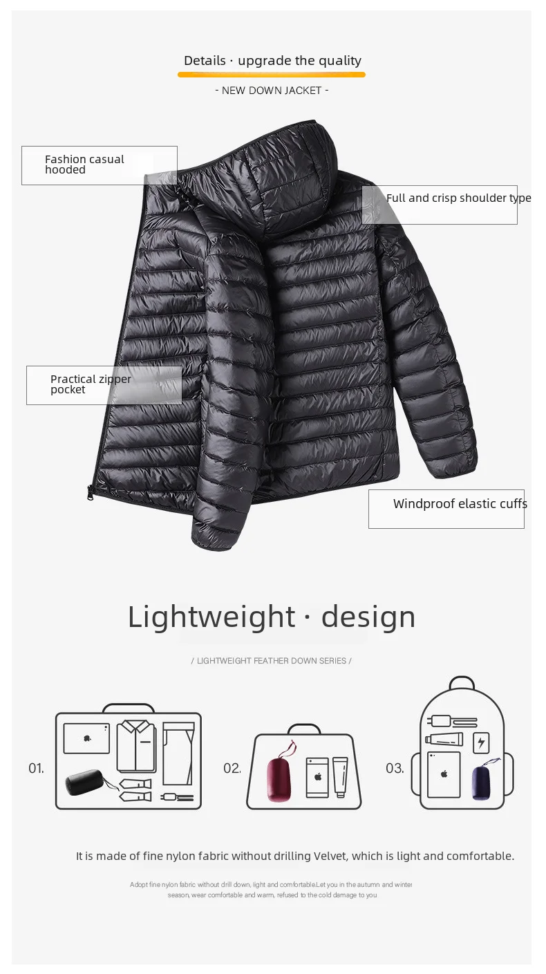 Winter Men’s Lightweight Casual Cotton-padded Coat Hooded Jacket Slimming Warm Outerwear Fashionable Short Length