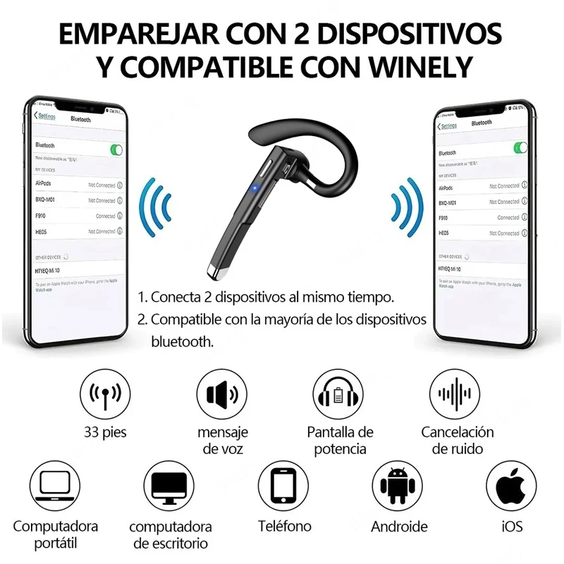 Wireless Headphones Bluetooth Headset With Microphone Earphones Handsfree Noise Canceling Audifonos Talking Business Driving