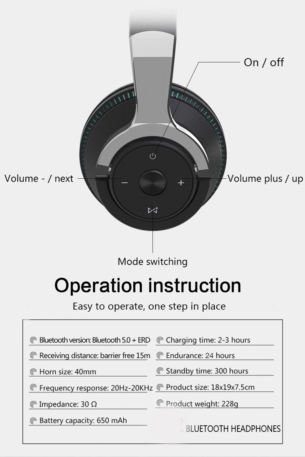 Unique led breathing light can switch multi color automatically, bring you 24 hours music play time, romantic and great time. Under the LED mode, the battery can last Long hrs. Upgraded battery allow you have Long hours music enjoyment, you can use it as a wired headset with provided audio cable. Note: You can short click on/ off button , to stop the light.