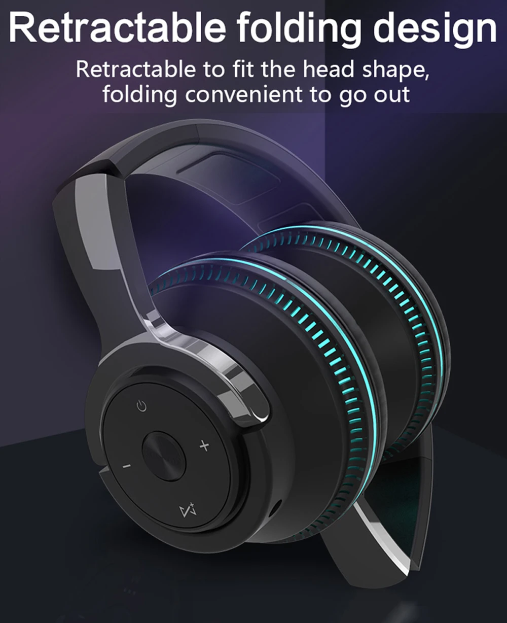 5. 4 In 1 Multifunctional Bluetooth Headphones: Long playtime bluetoothe 5.1 headphones + TF card music player + Romantic LED Light + Wired headset. Buy 1 product, you get 4 function. Proprietary 40mm large-aperture drivers combine with advanced bluetooth 5.1 tech, product incredible powerful sound and clear bass. can get a Balanced audio at all music style, and provide you a better listening experience in any environment.