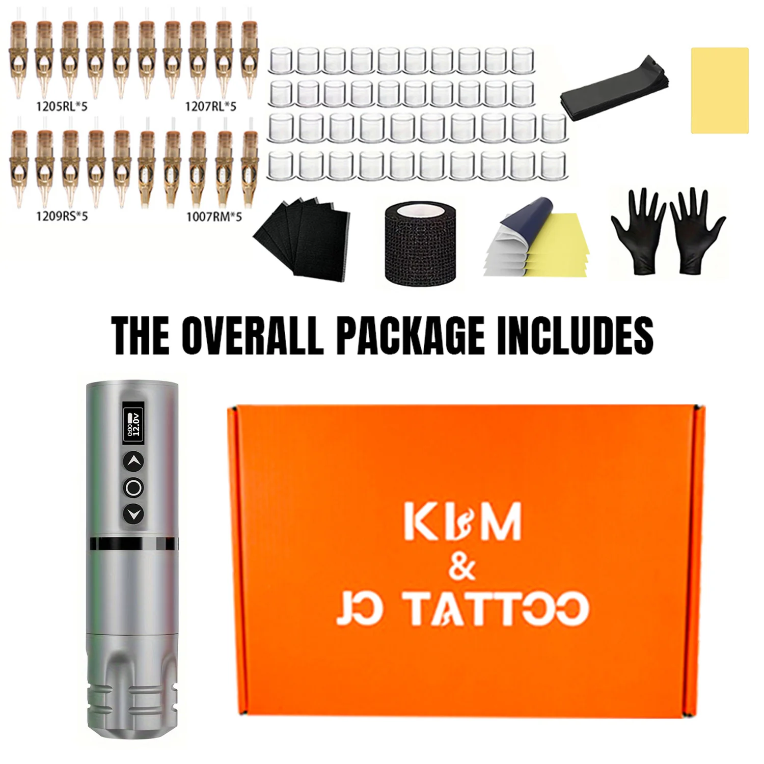 Professional Tattoo Machine Pen Kit Wireless LED Digital Display 1500mAh Battery With Mixed Cartridge Needles for Tattoo Artists