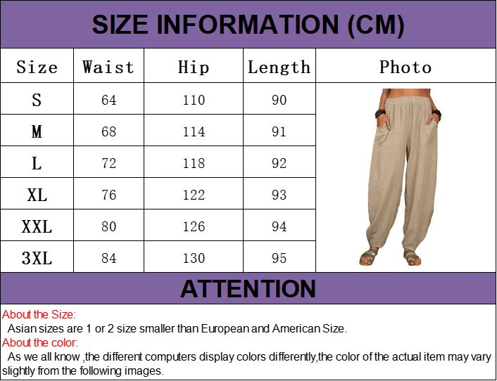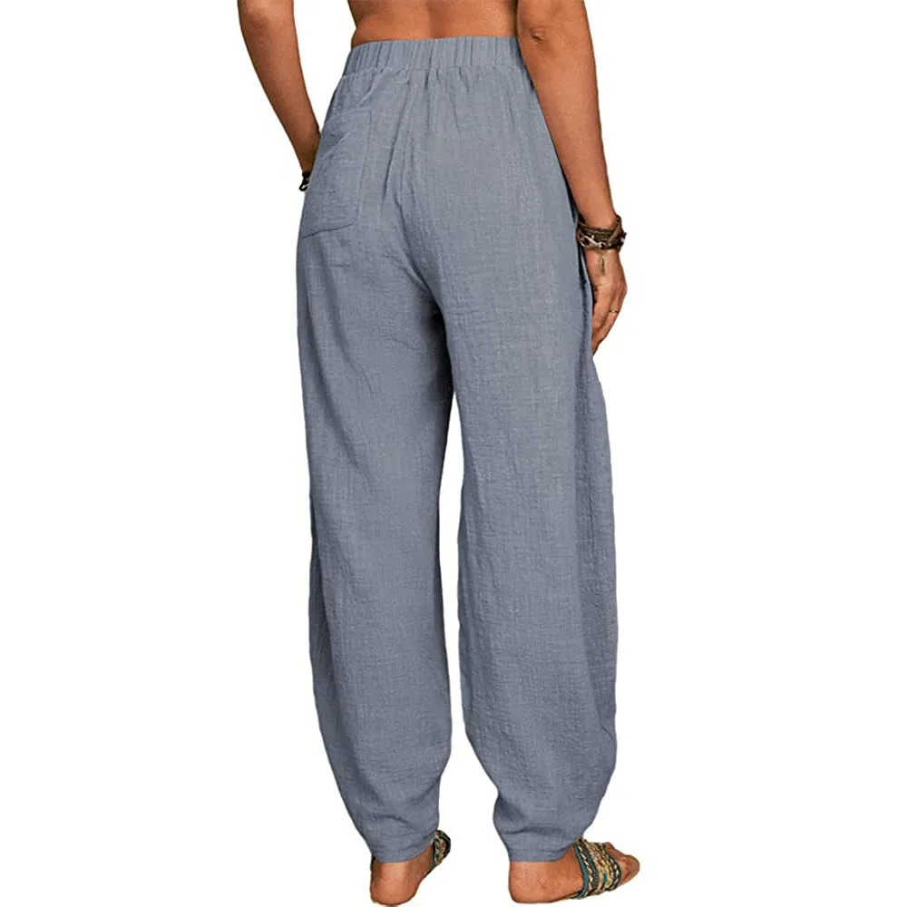 Women Cotton Pants Summer Casual Vintage Pockets Thin Beach Trousers Female Elastic Waist Wide Leg Retro Loose Harem Pants