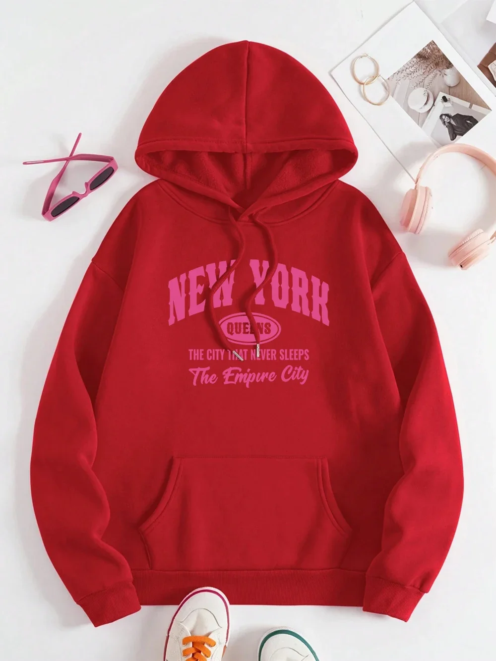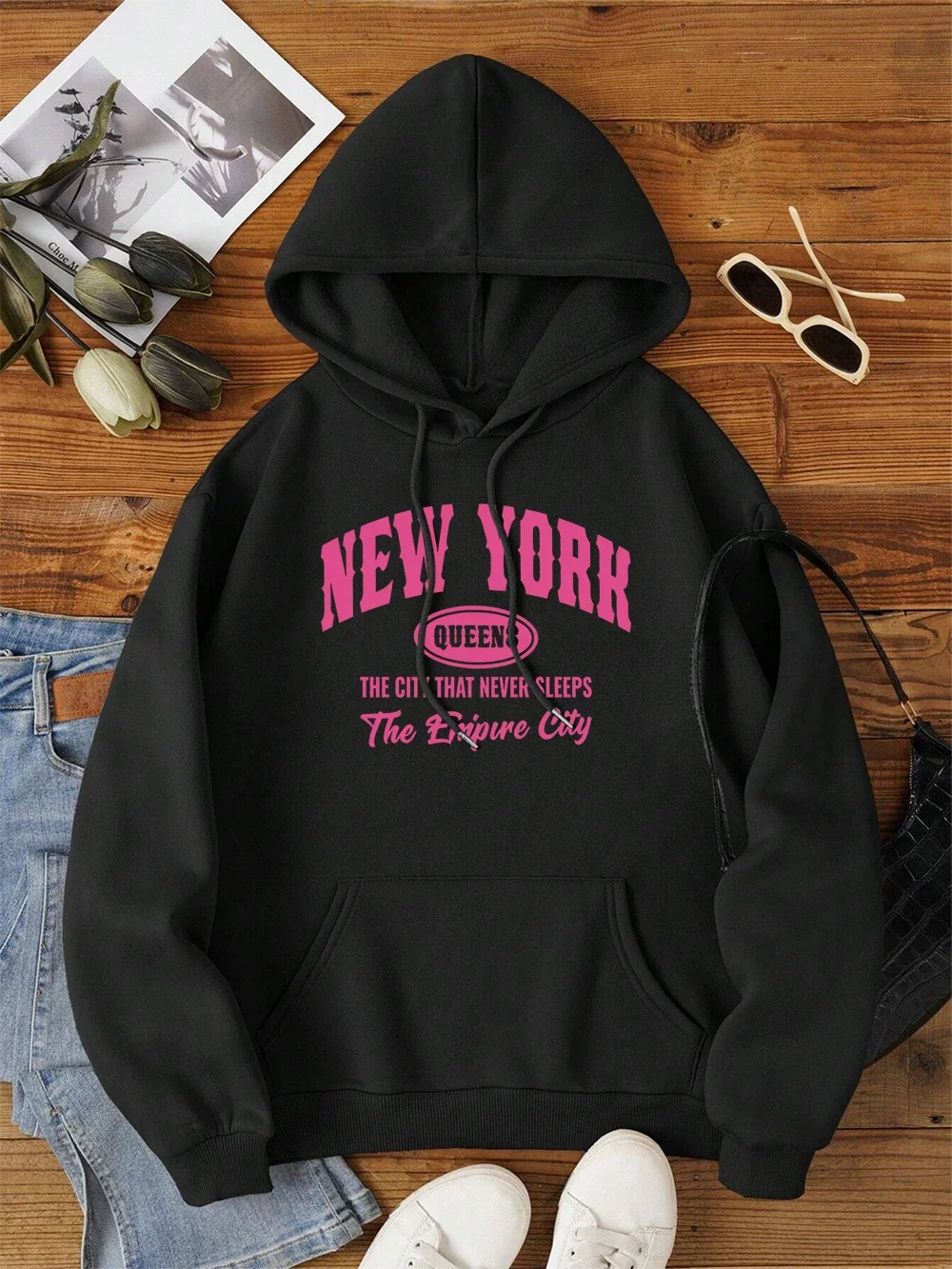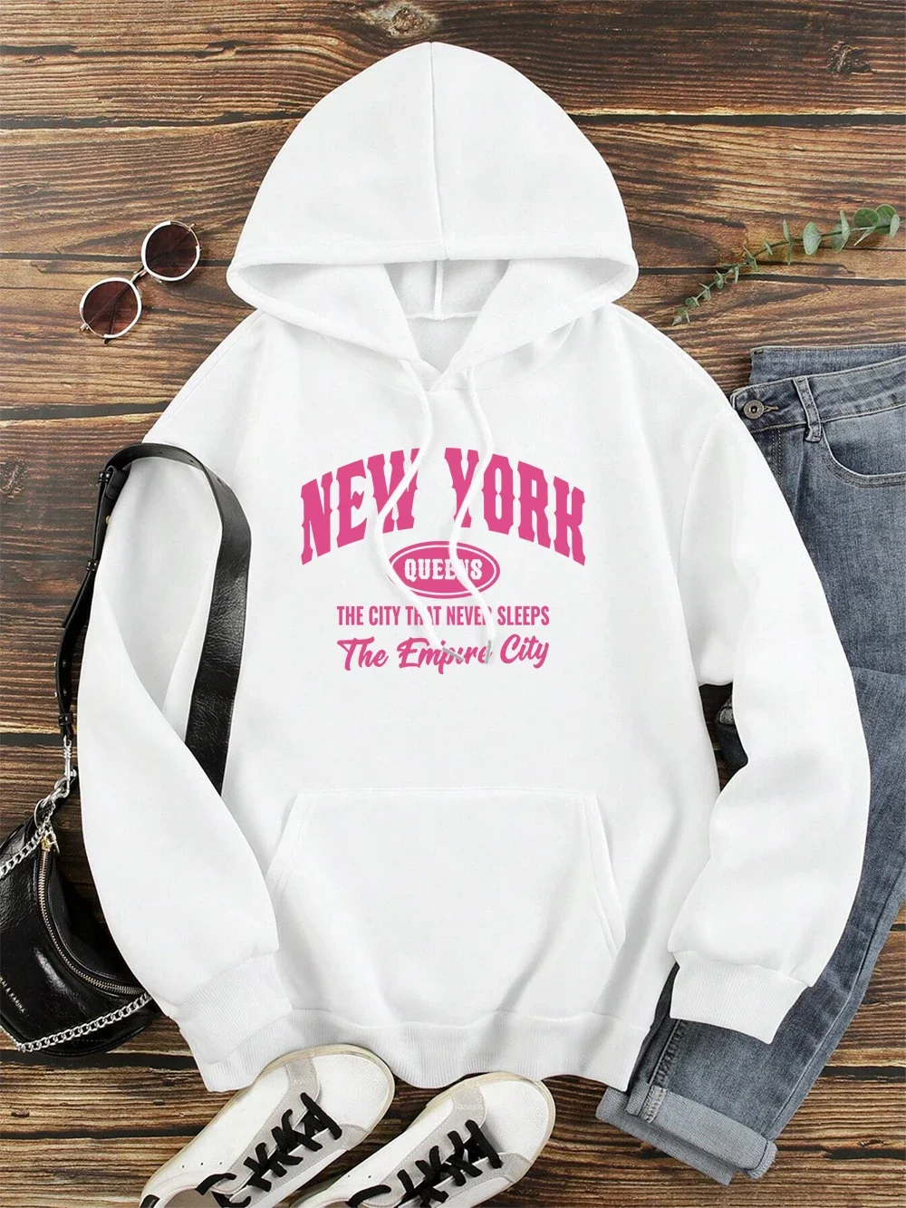 Women Hoodies New York Queens The City That Never Sleeps Hoody Men Fashion Hip Hop Clothing Cute O-Neck Street Loose Sweatshirt