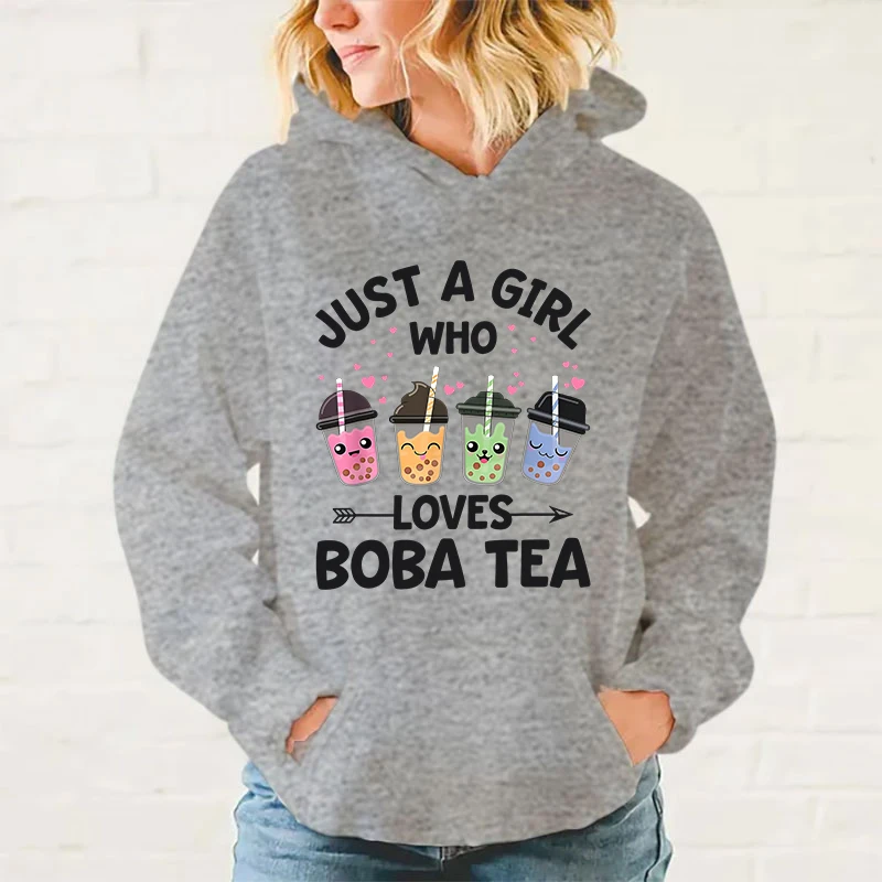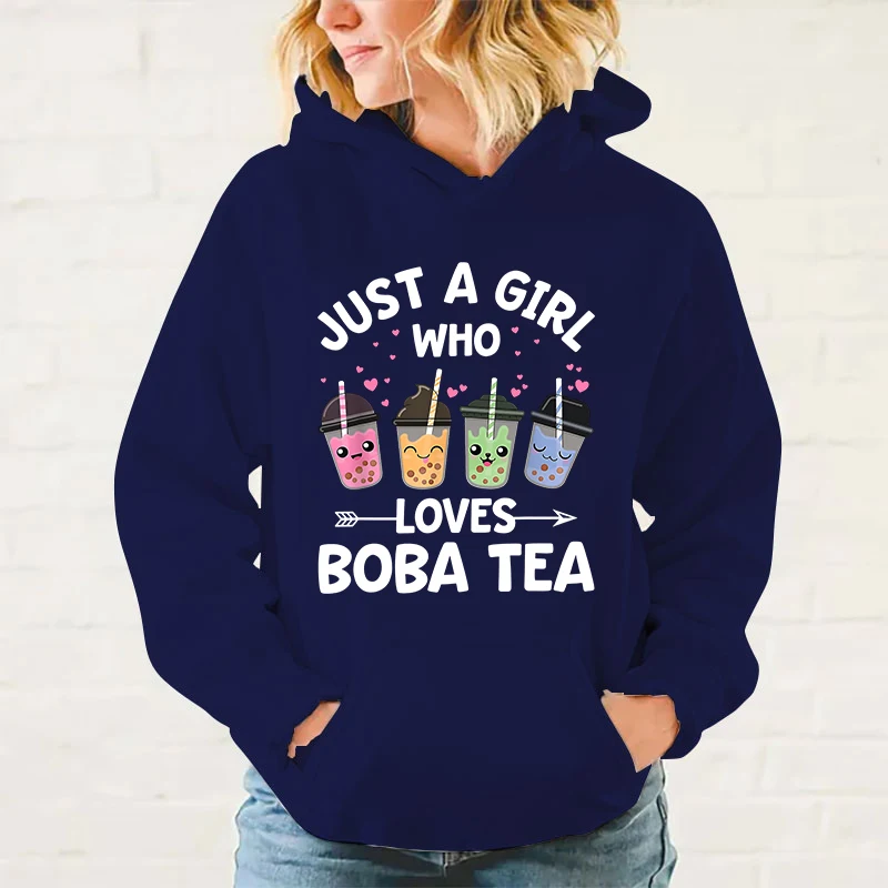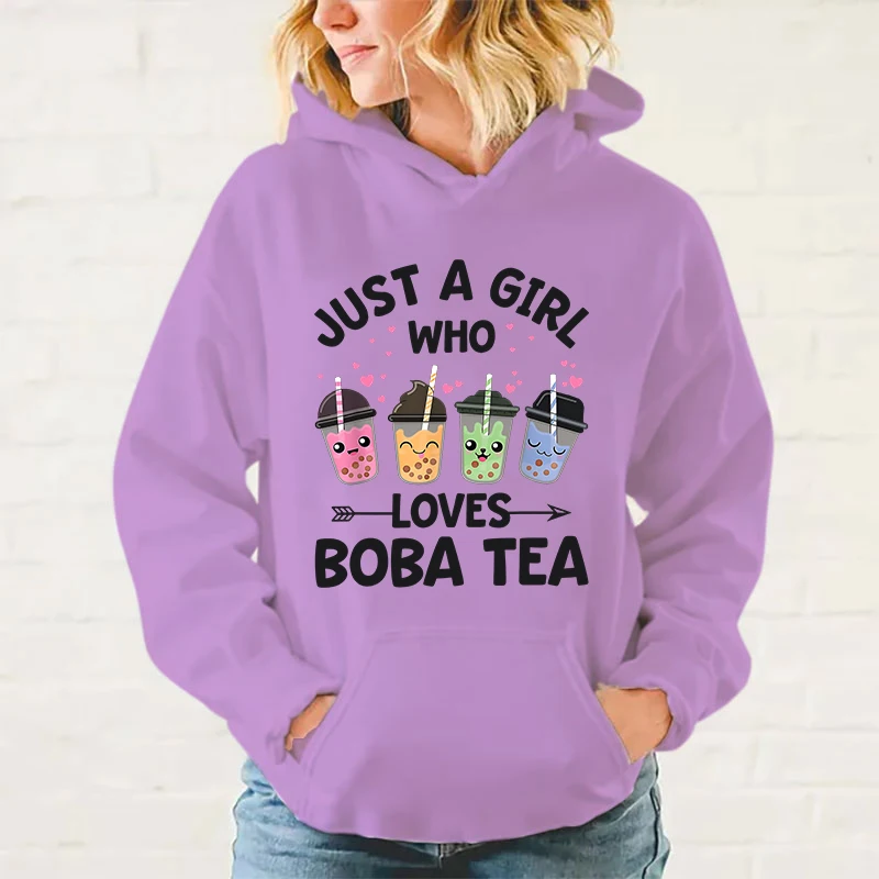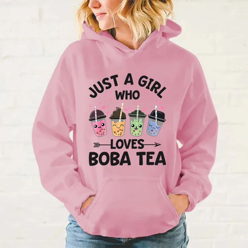 Women/Mens Hoodies Just A Girl Who Loves Boba Tea Print Hoodies Sweatshirt Winter Casual Streetwear Clothes Plus Size Tops