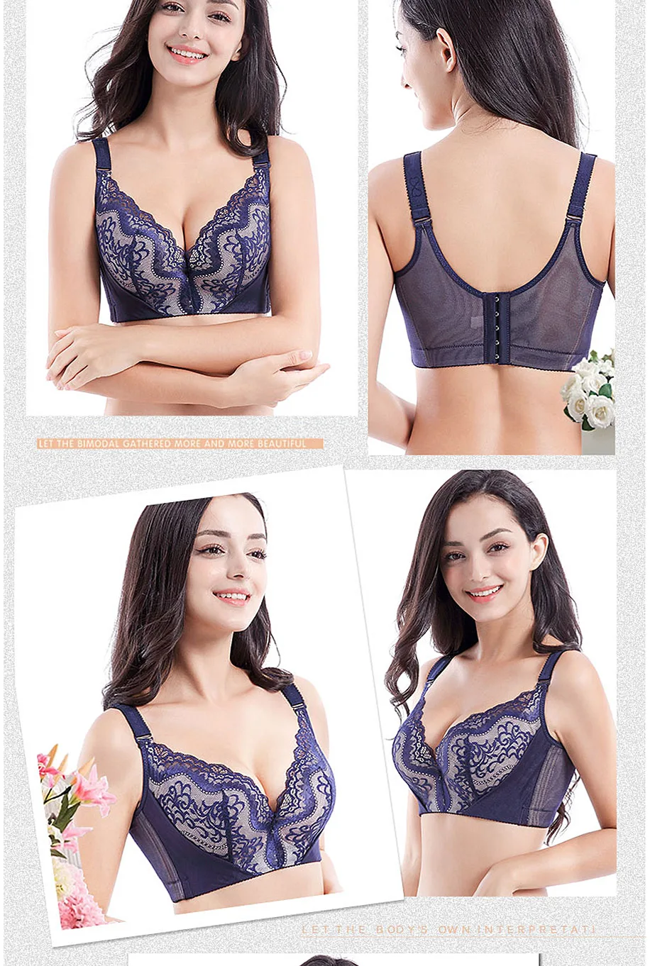 Women Plus Size Bra Anti Sagging Seamless Push Up Bra Lace Big Size Women Wide Strap Adjustable shoulder straps Lingerie